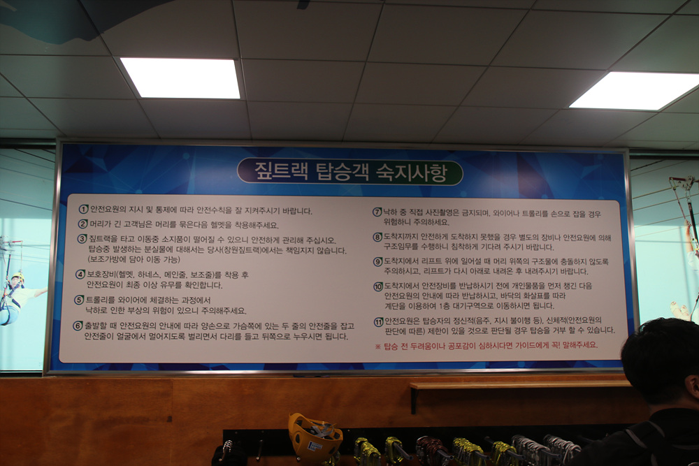 엘리베이터를 타고 19층까지 금방 오르면 짚트랙을 탈 수 있는 공간이 나온다.
