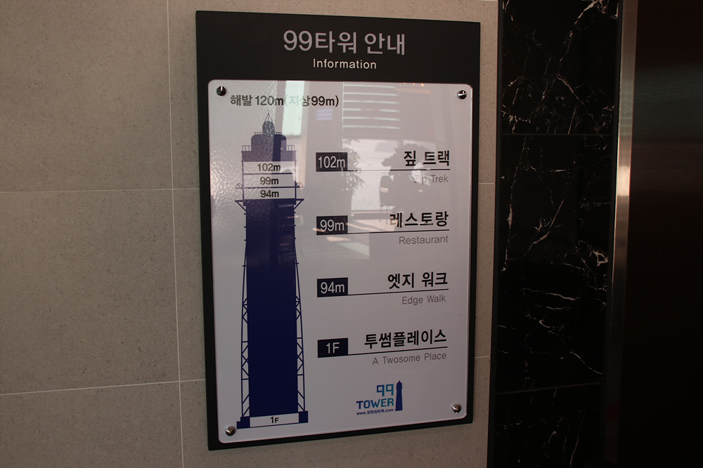다시 99타워에 온 후 엣지워크 층으로 엘리베이터를 타고 올라간다.