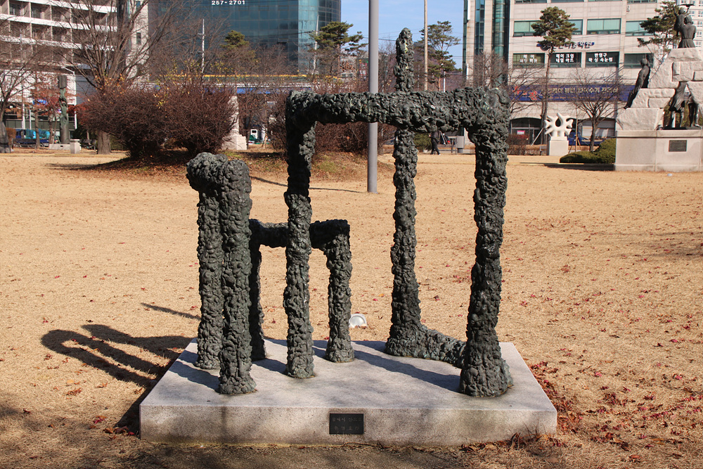 동상은 중견 조각가 백윤기씨 작품이고 규모는 70cm 높이 좌대 위에 2.2m 입니다.
