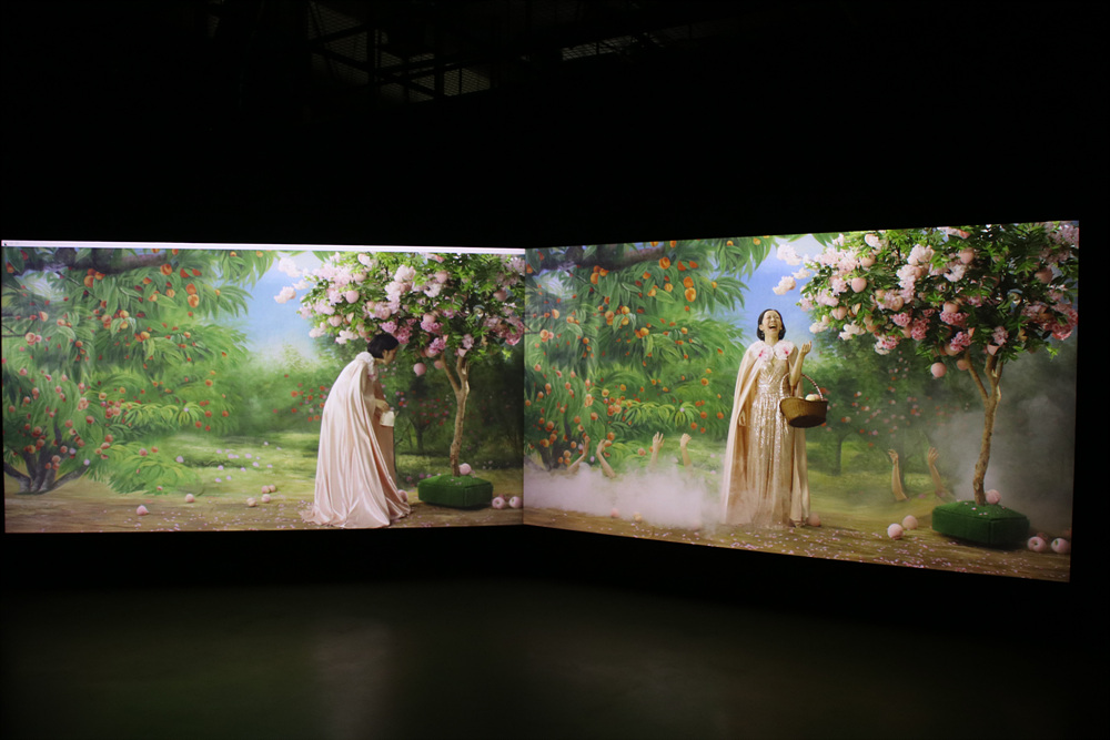 중국 작가 양푸동의 '다섯 번째 밤 2 리허설'은 영화 촬영 세트장에서 동일 장면들을 각기 다른 위치에서 다중 시점으로
