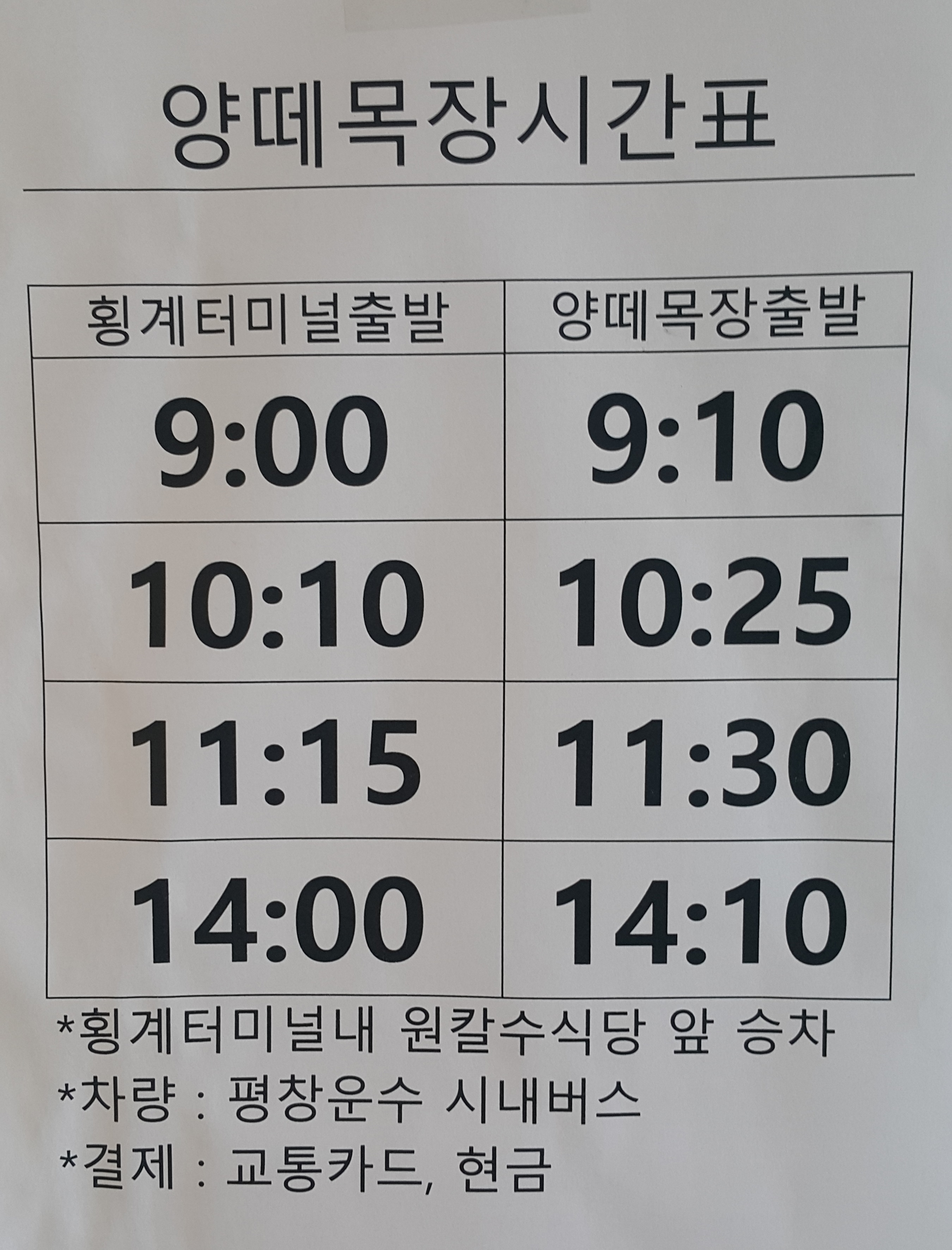 양떼목장 시간표, 용평리조트, 알펜시아 시간표.