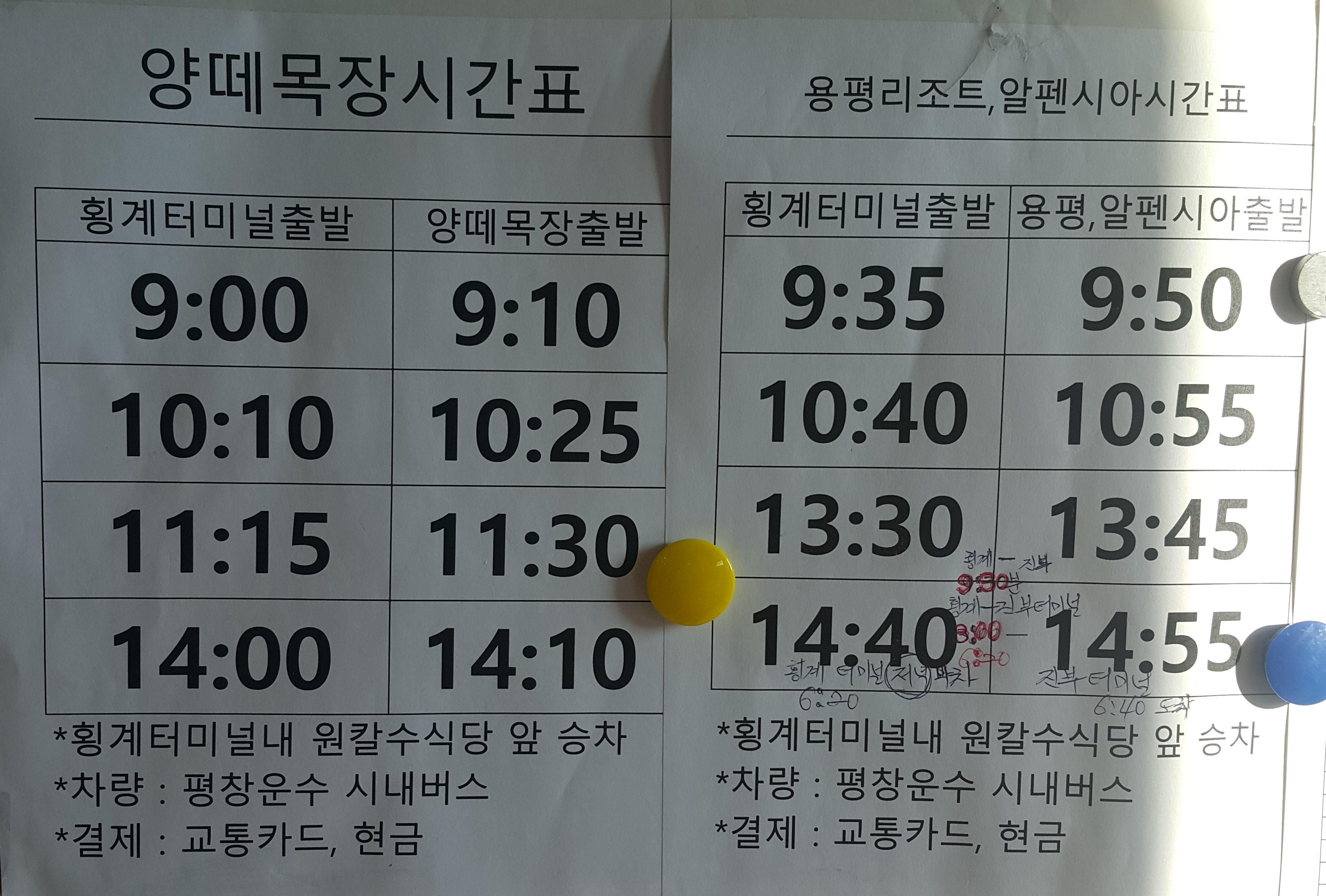 경유지 : 용평리조트~독가촌~청록원~동보APT~KT수련관~횡계로터리~우체국.