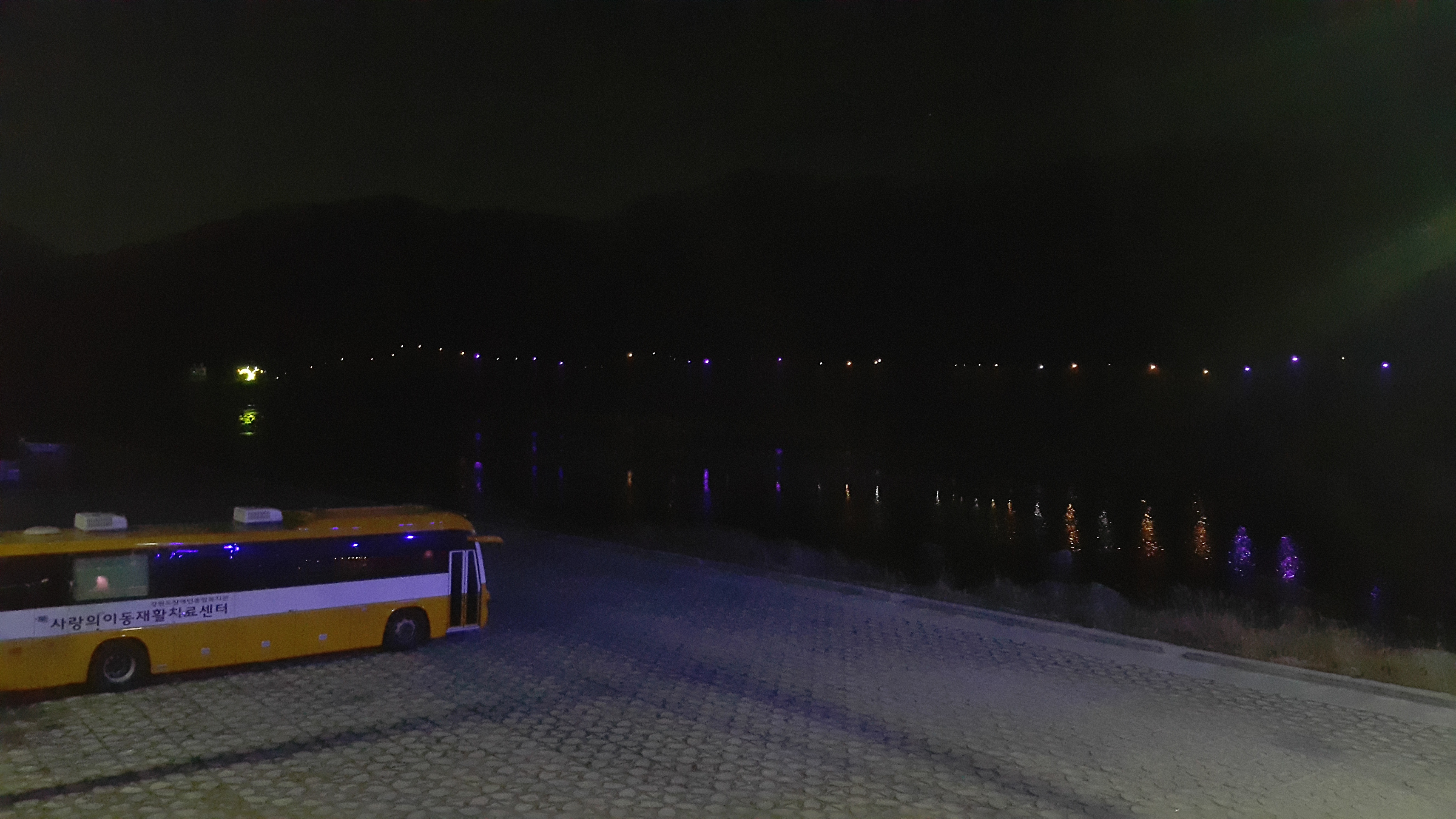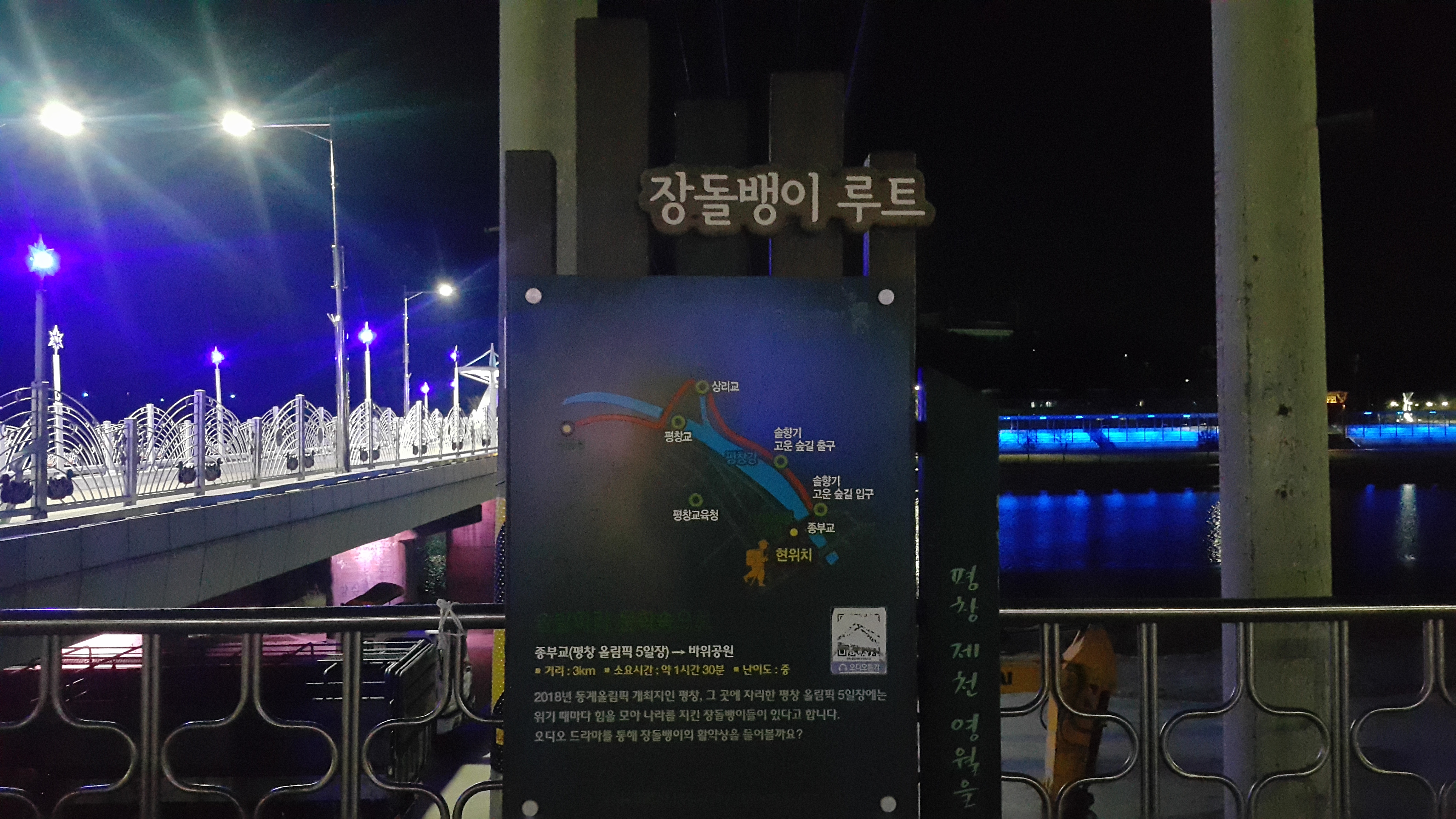 평창시외버스터미널 맞은편에 다리가 조명을 켜놓아 경관이 멋지다.