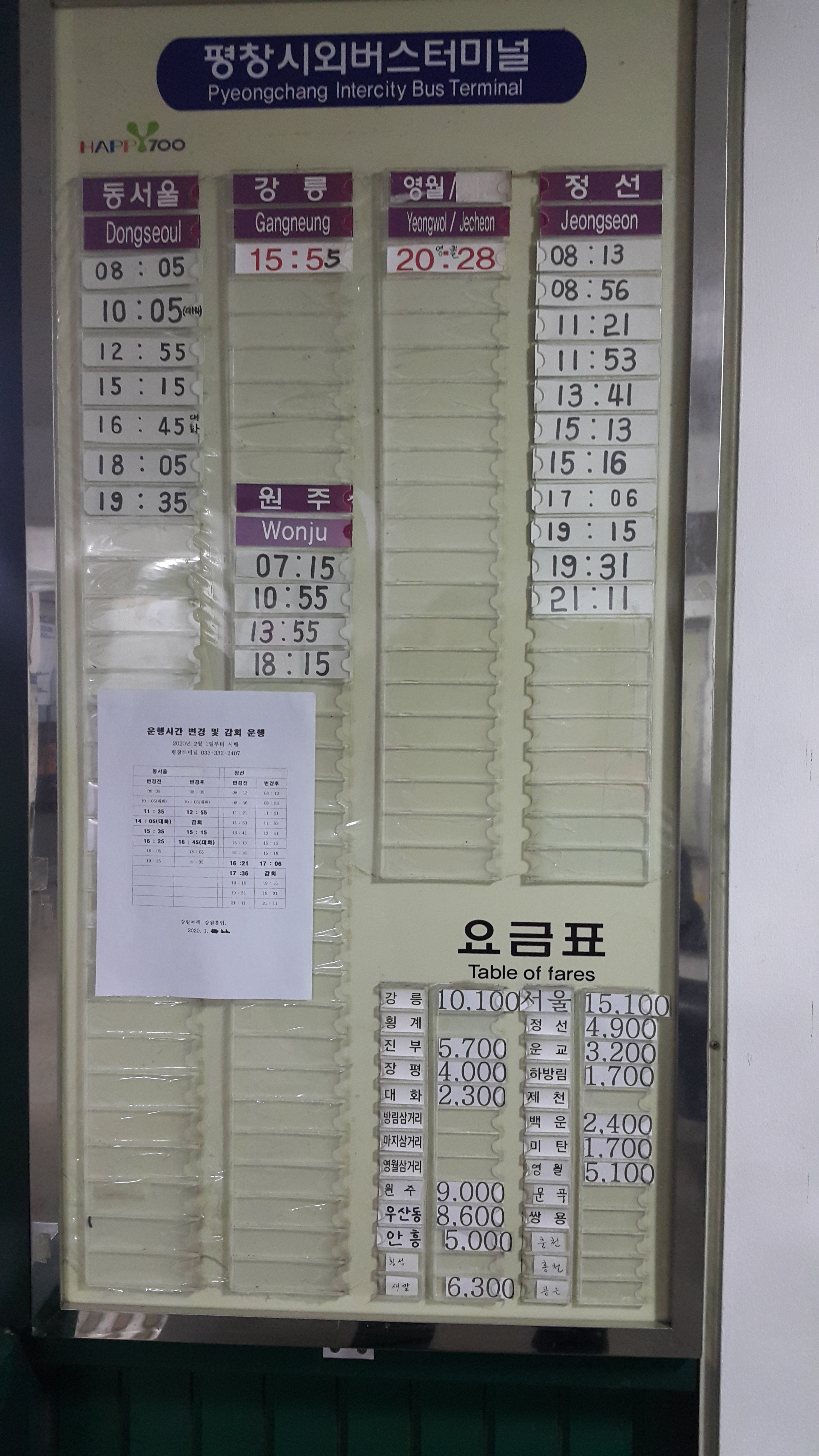 평창시외버스터미널 시간표 강원도여행 워크뷰