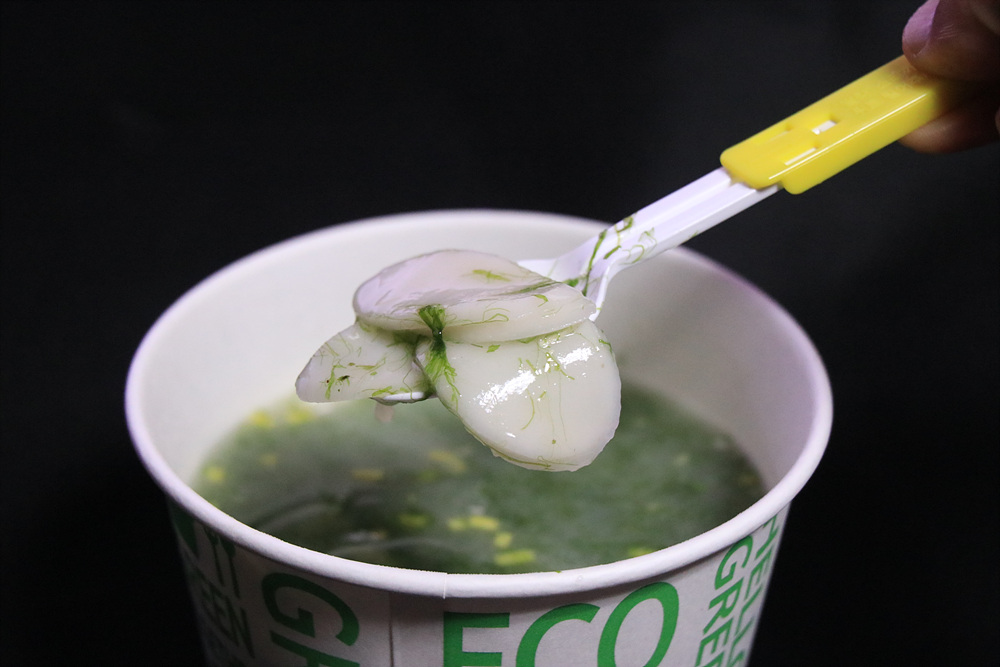 그릇에 내용물을 넣고 뜨거운 물을 붓고 2분만 기다리면 맛있는 즉석 매생이떡국이 완성됩니다.