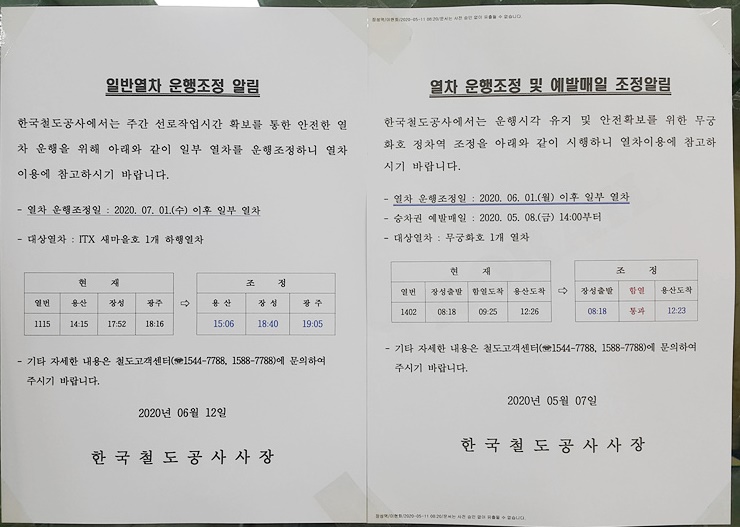 7월 1일 부터 ITX 새마을호 1개 하행 열차 시간표가 변경됩니다.