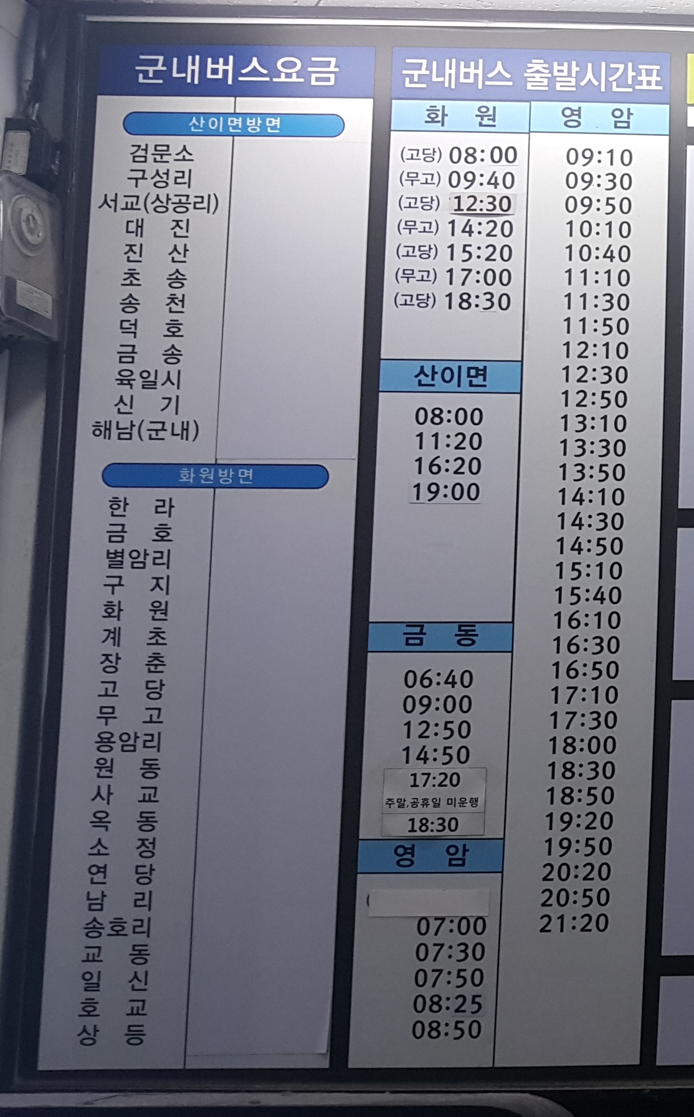 목포 출발 부산, 순천, 여수, 양산, 울산, 진도, 해남, 전주, 지도, 점암, 경주, 포항, 완도, 영광, 군산, 전주,