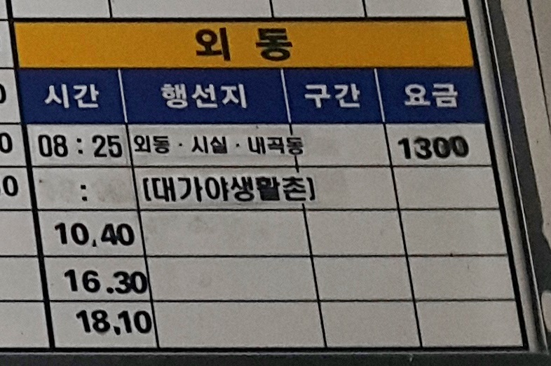 고령시외버스터미널 출발 외동 방면.