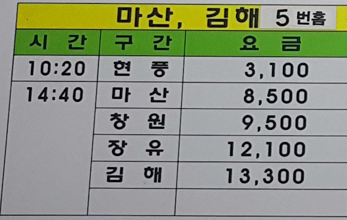 고령시외버스터미널 출발 마산,김해 방면.