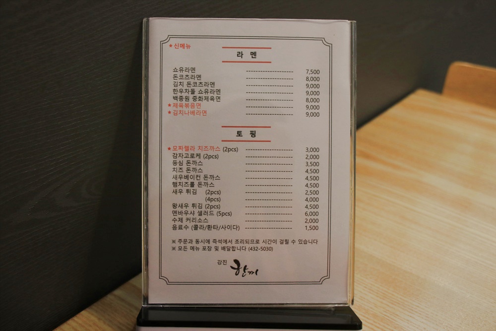 메뉴판을 보면 수제 돈가스, 일본식 라면, 오므라이스가 주요 메뉴인데요
