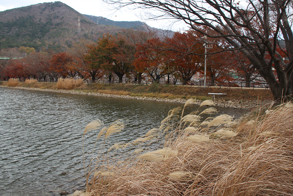 갈대와 단풍이 마지막 가을을 장식하며 자연의 아름다움을 표현하고 있습니다.