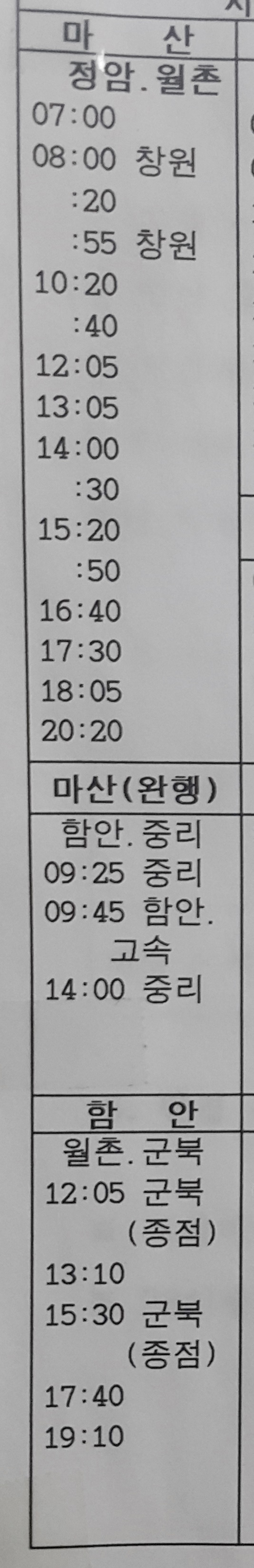 의령 출발 마산, 정암, 월촌, 창원, 함안 방면.