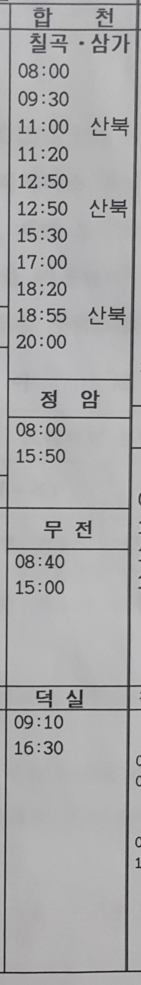 의령 출발 합천, 칠곡, 삼가, 정암, 무전, 덕실 방면.