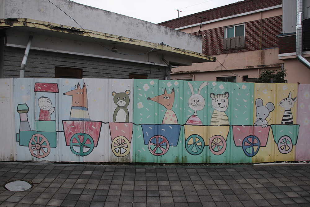 장성역 앞 주택가 담장에는 예쁜 벽화들이 그려져 있어