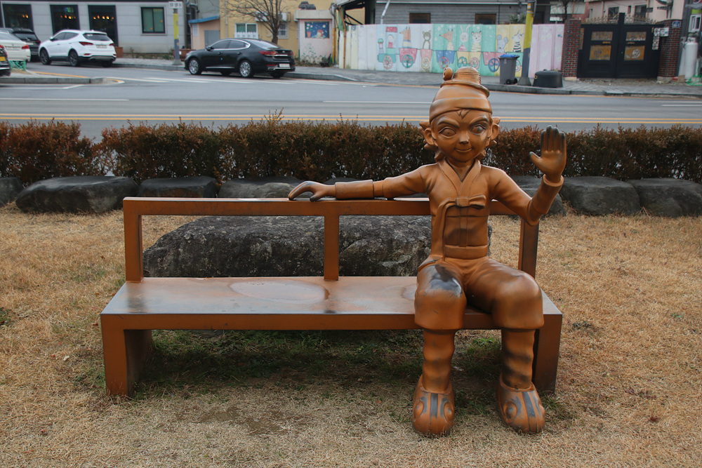 이 벤치에서는 홍길동과 함께 사진을 찍을 수 있어요