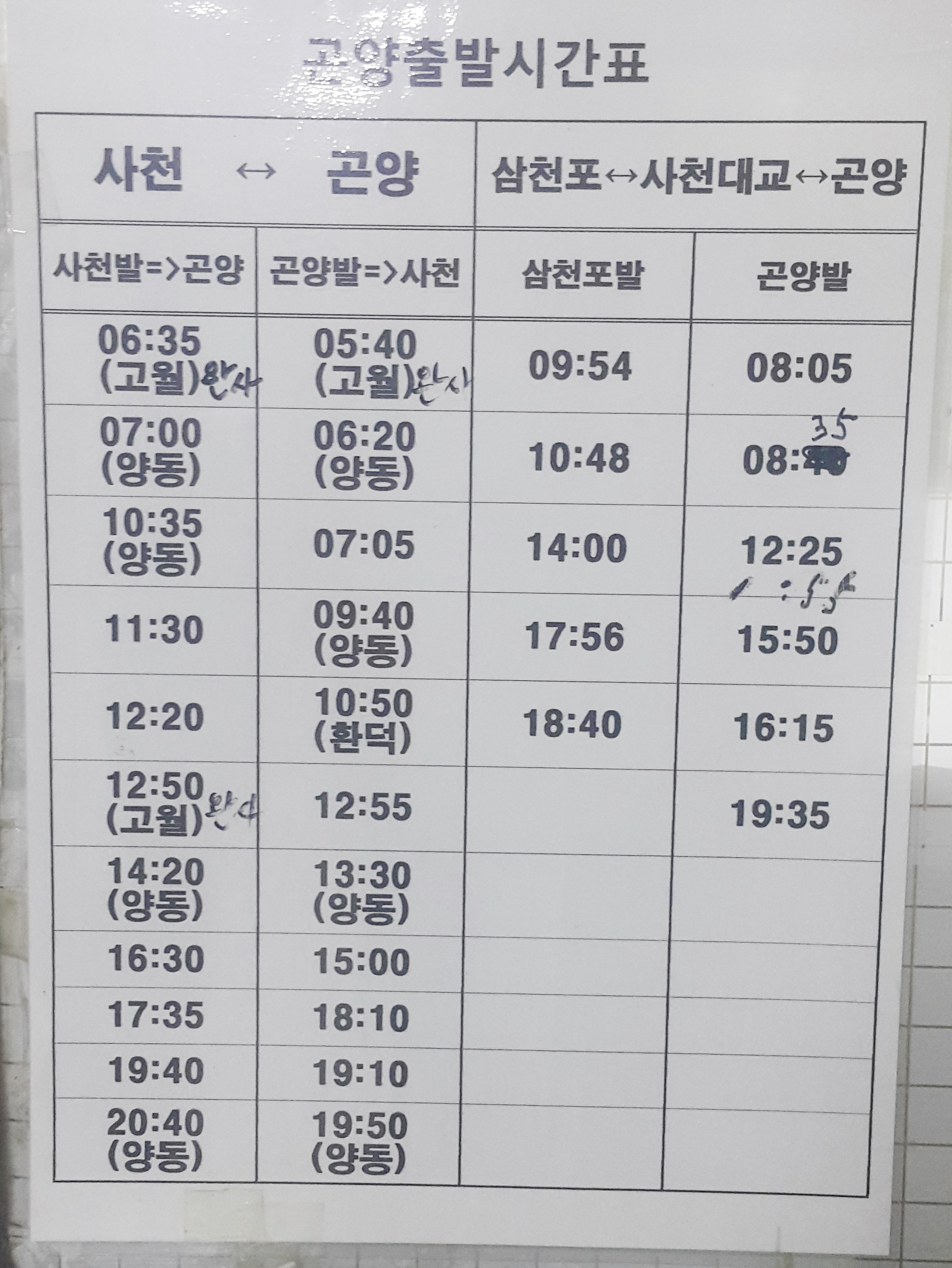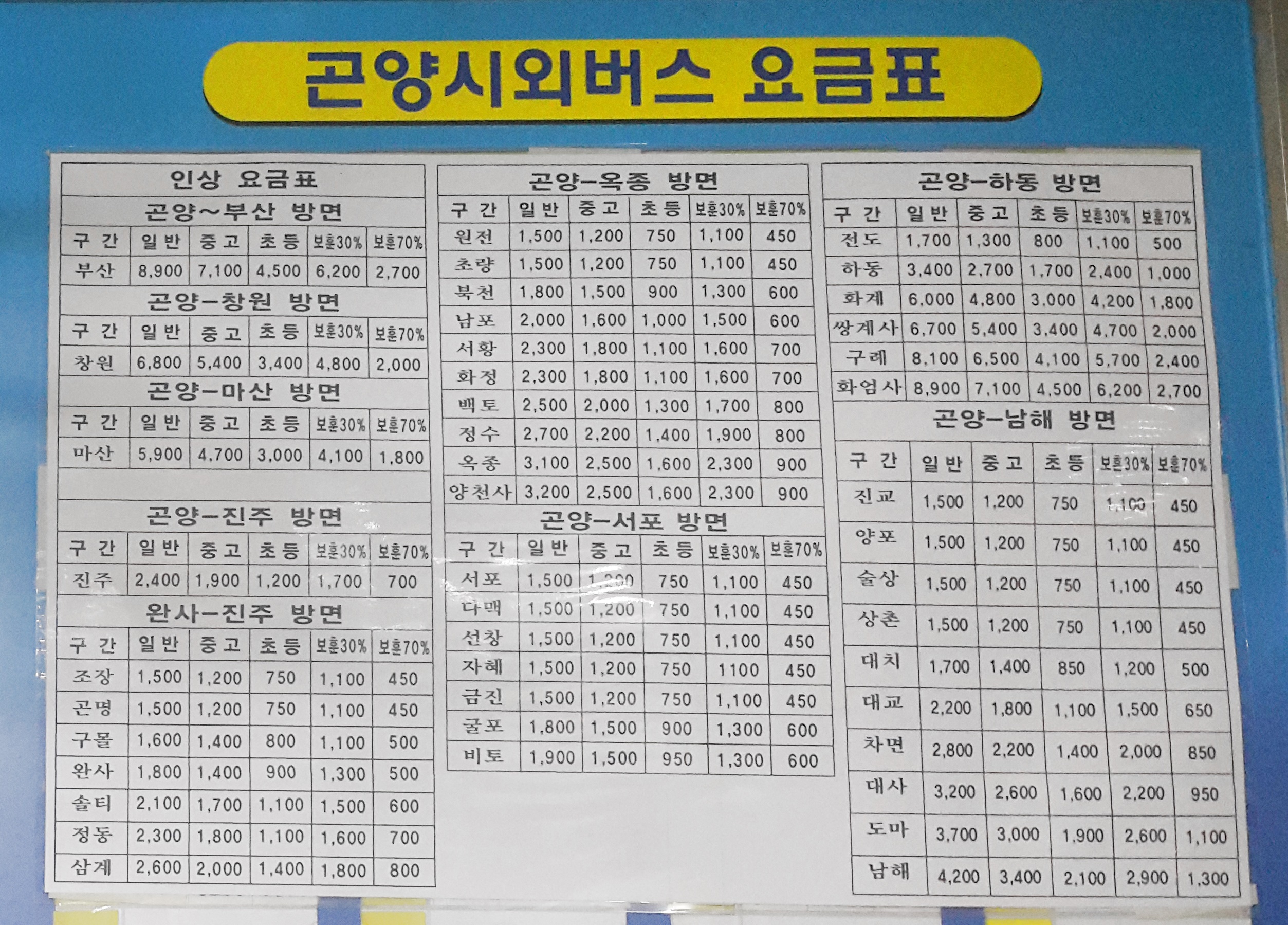 곤양시외버스 요금표