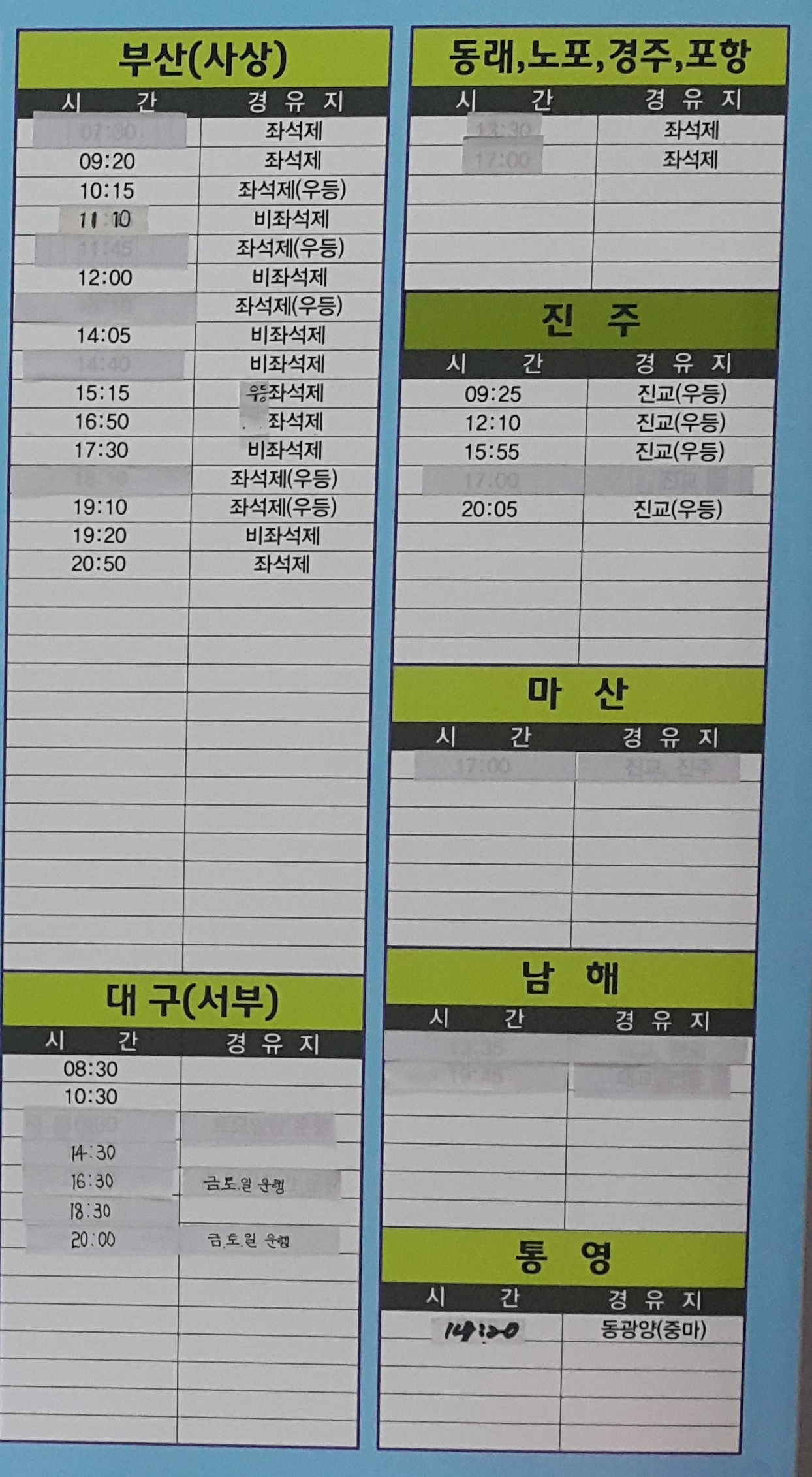 일상이야기/시외버스시간표
