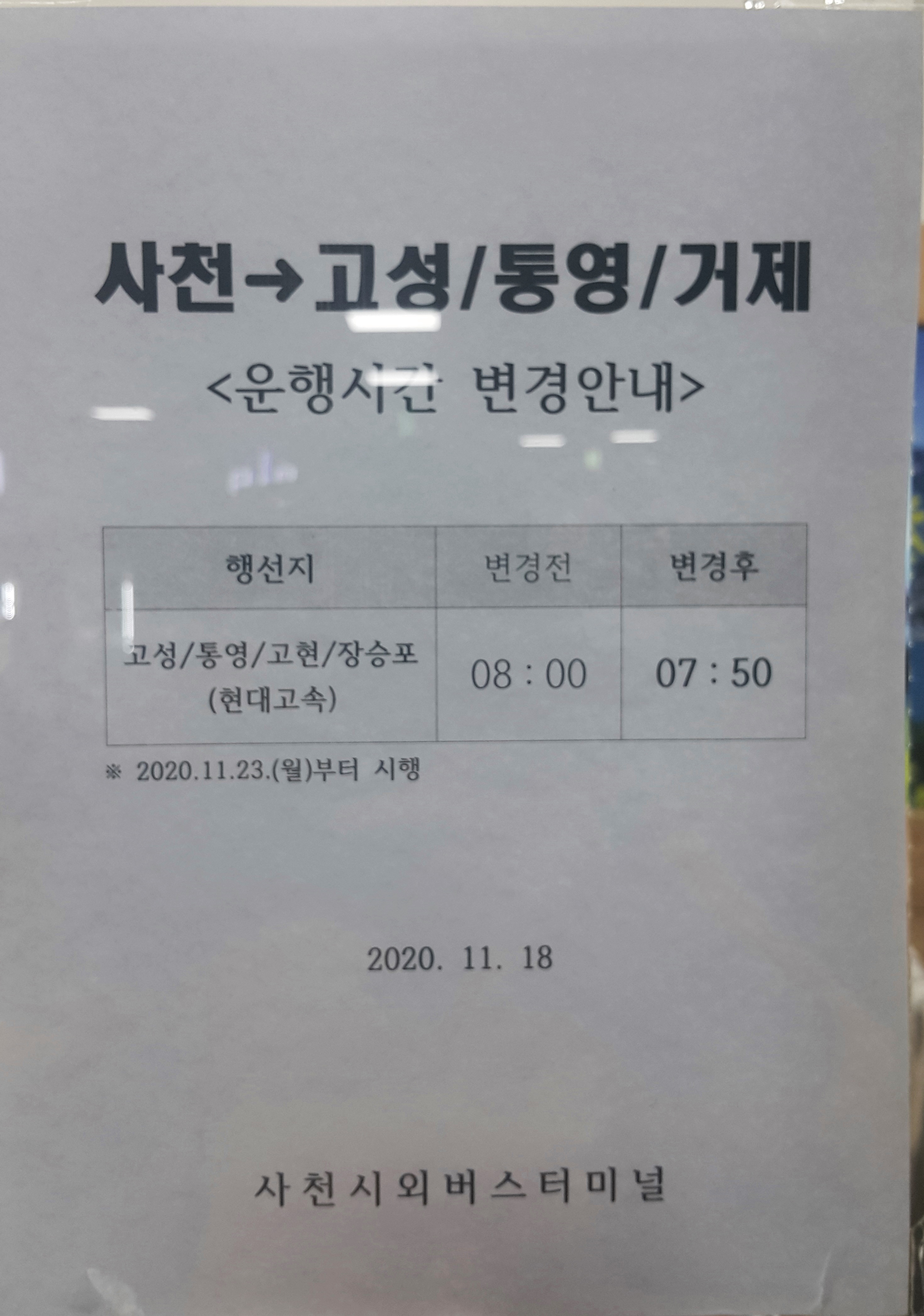 사천 출발 결행 안내