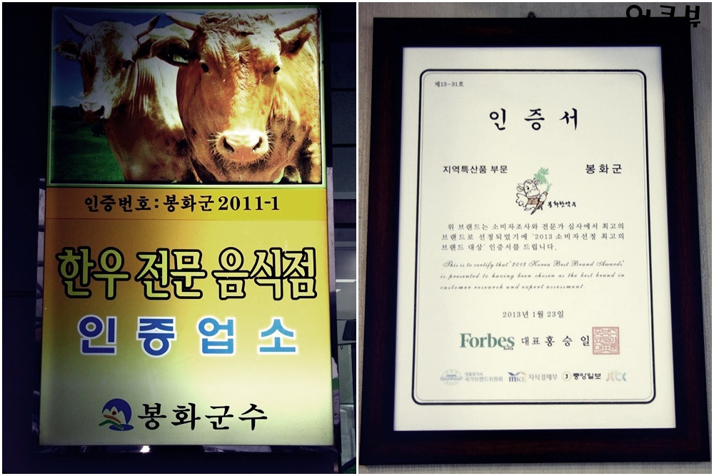 오늘은 ‘2017 우수축산물 브랜드'에 선정된 봉화한약우를 먹을수 있다는 봉화한약우프라자에 가보았습니다.