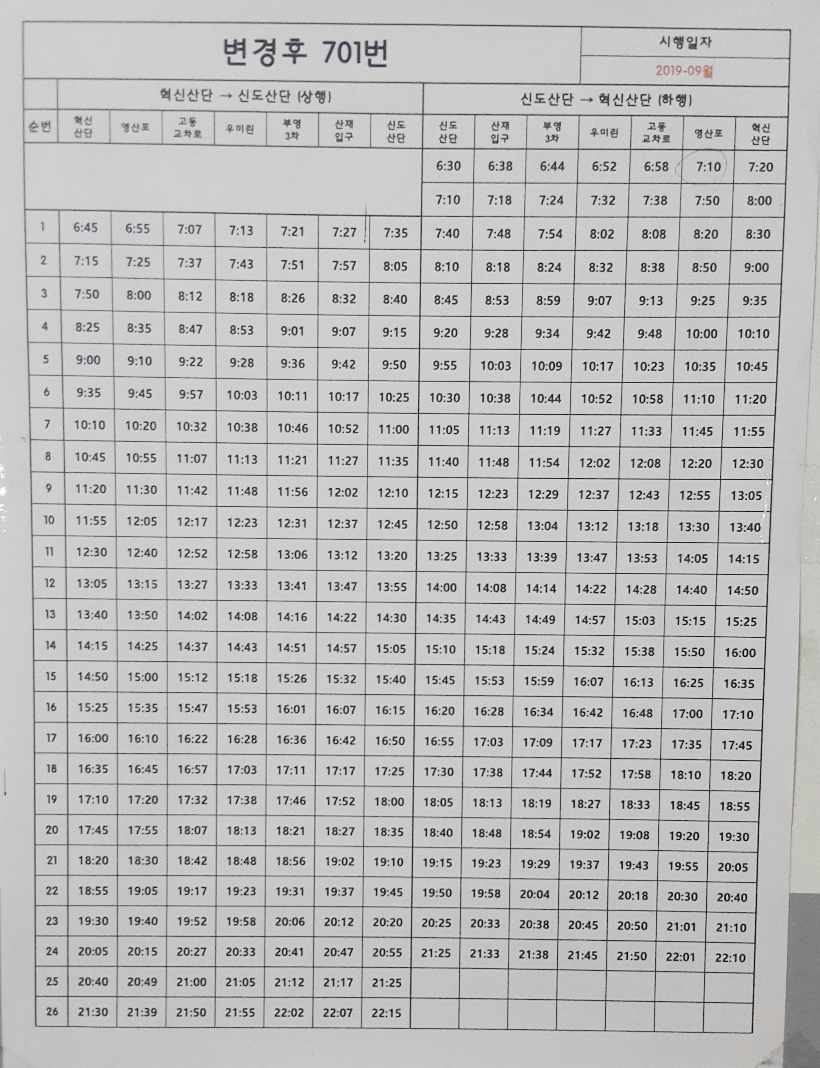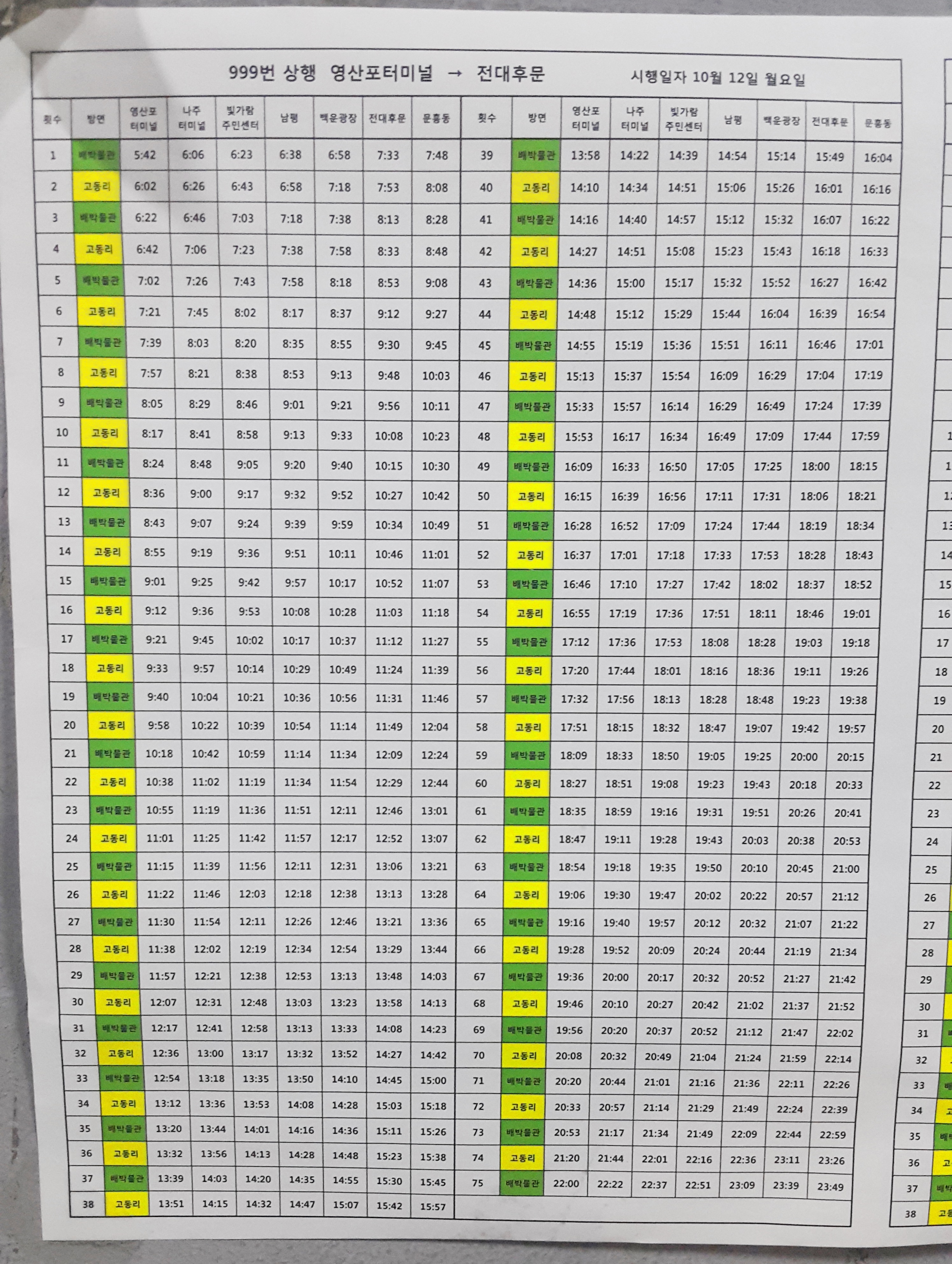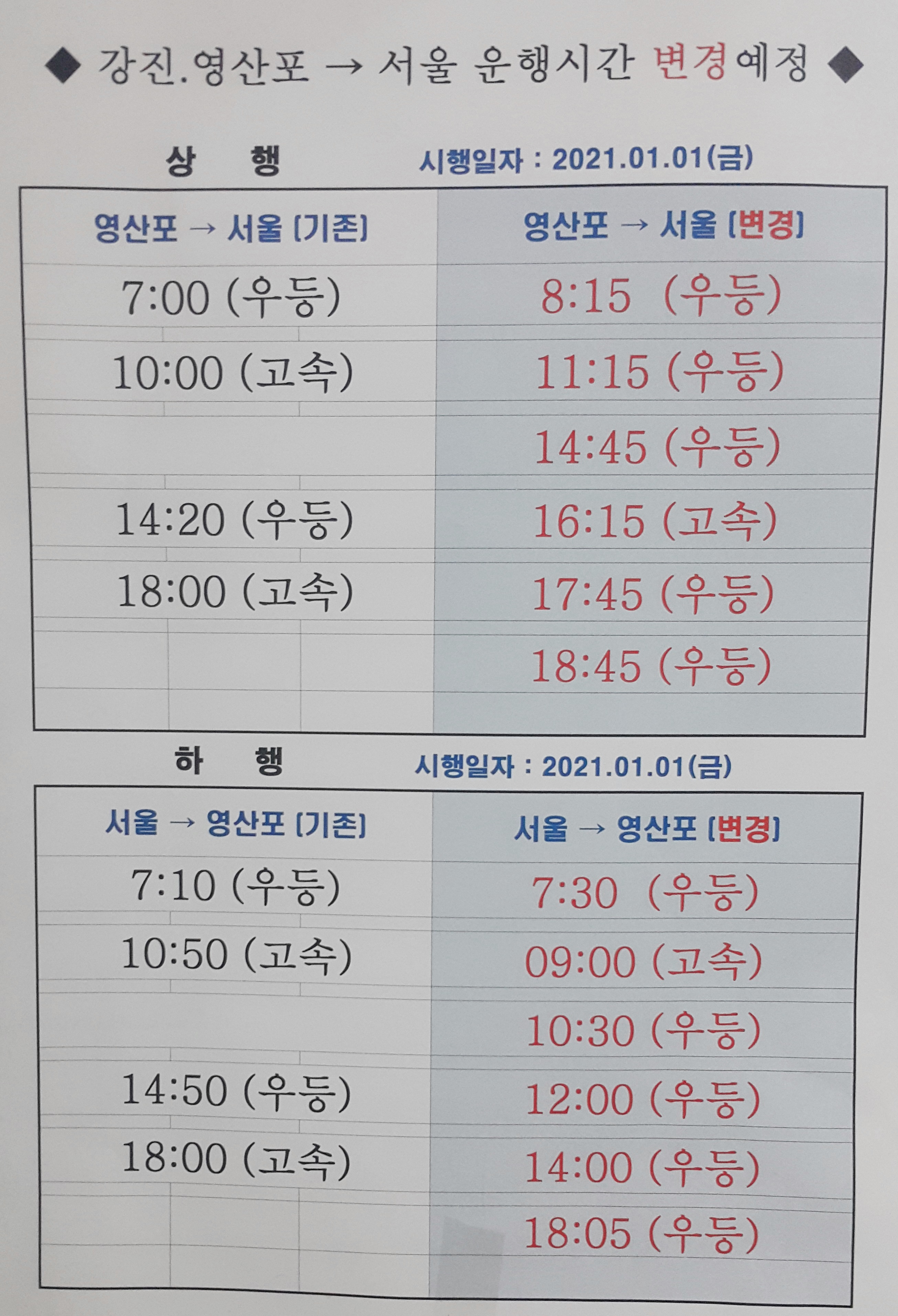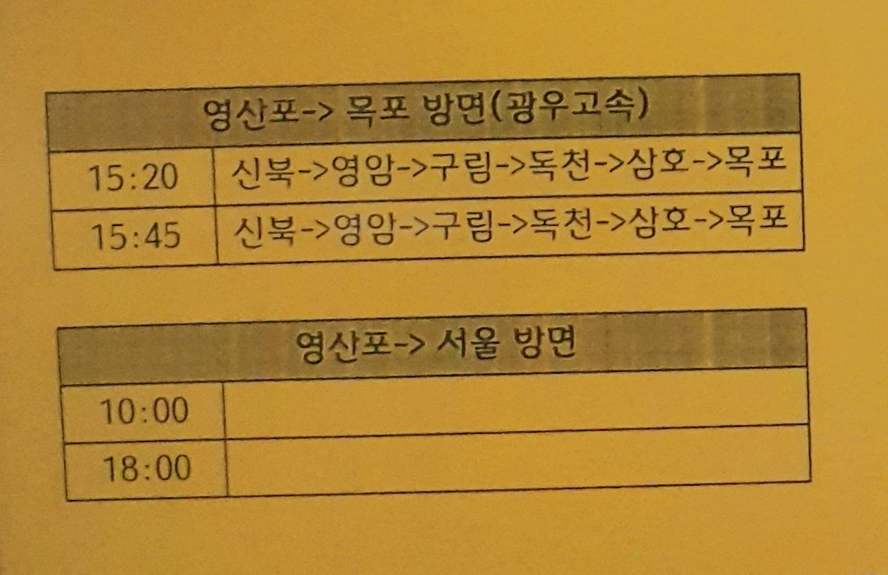 영산포 출발 목포, 나주, 진월동, 광주 유스퀘어 방면.