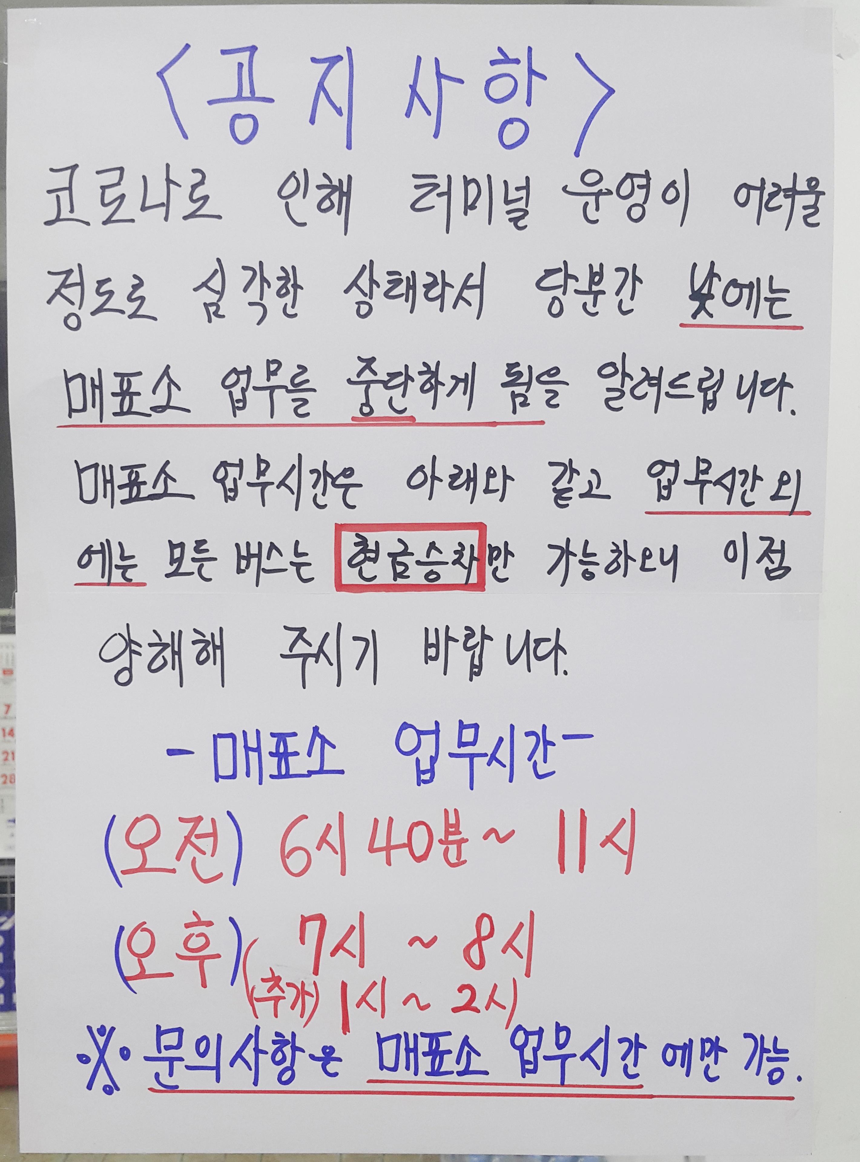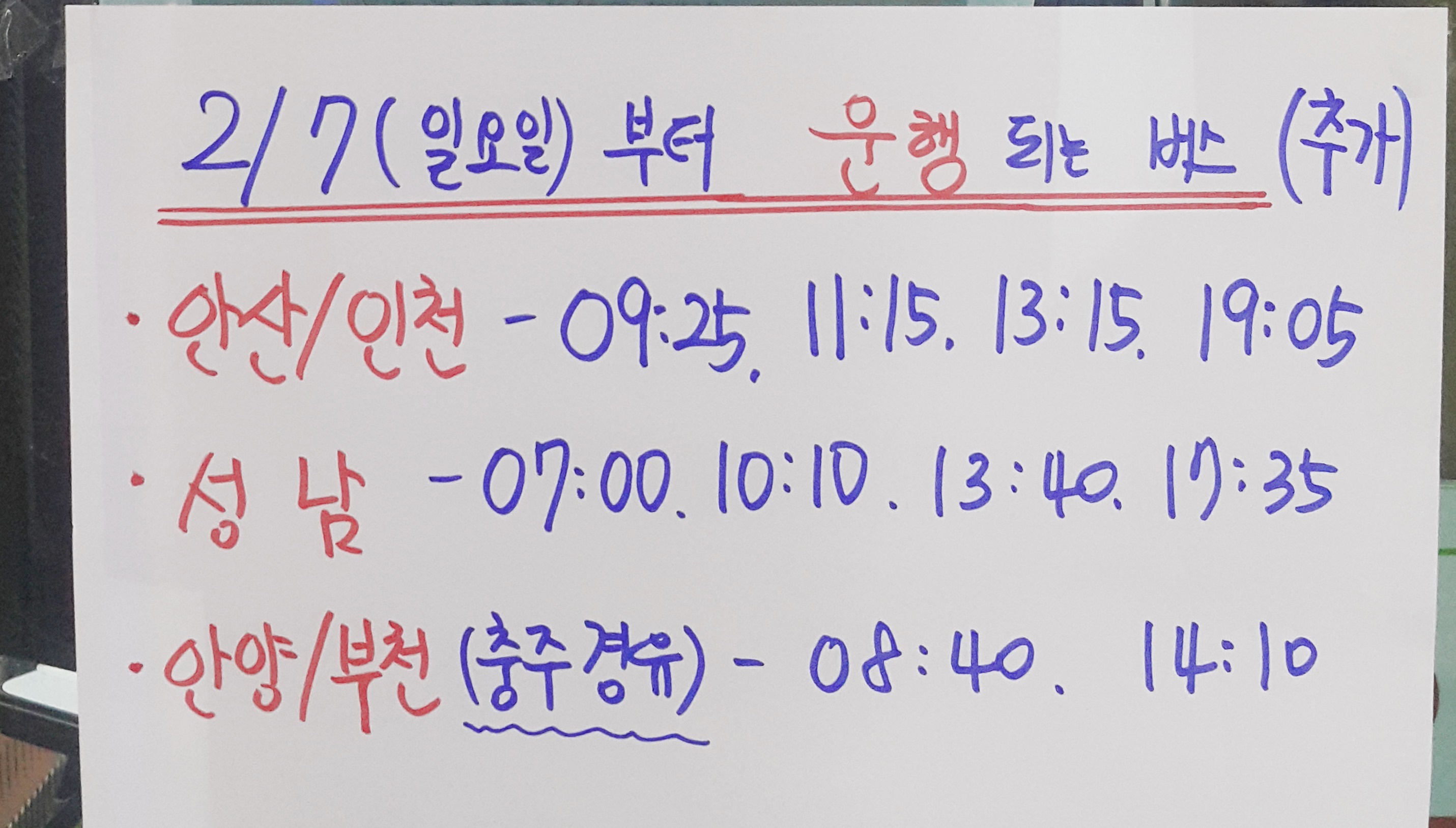 문경시외버스터미널 출발 안산, 인천, 성남, 안양, 부천,충주 방면.