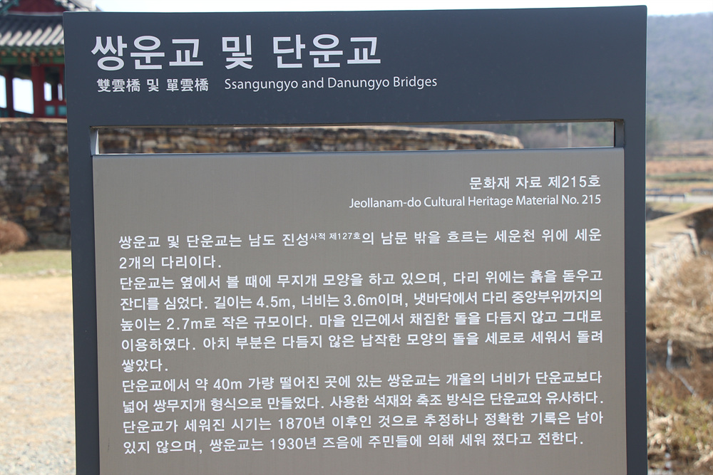쌍운교와 단운교는 진도 남도진성의 남문 밖을 흐르는 개울인 세운천을 건너는 2개의 무지개다리입니다.