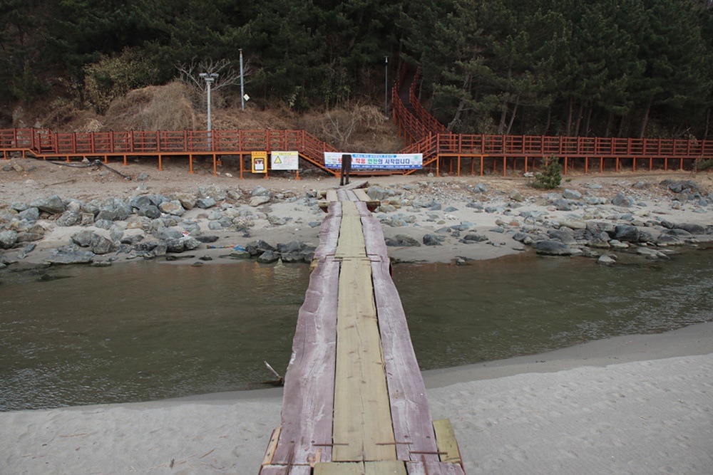 외나무다리가 놓임으로 인하여 이제는 바로 덕산해수욕장으로 갈 수 있게 되었습니다.