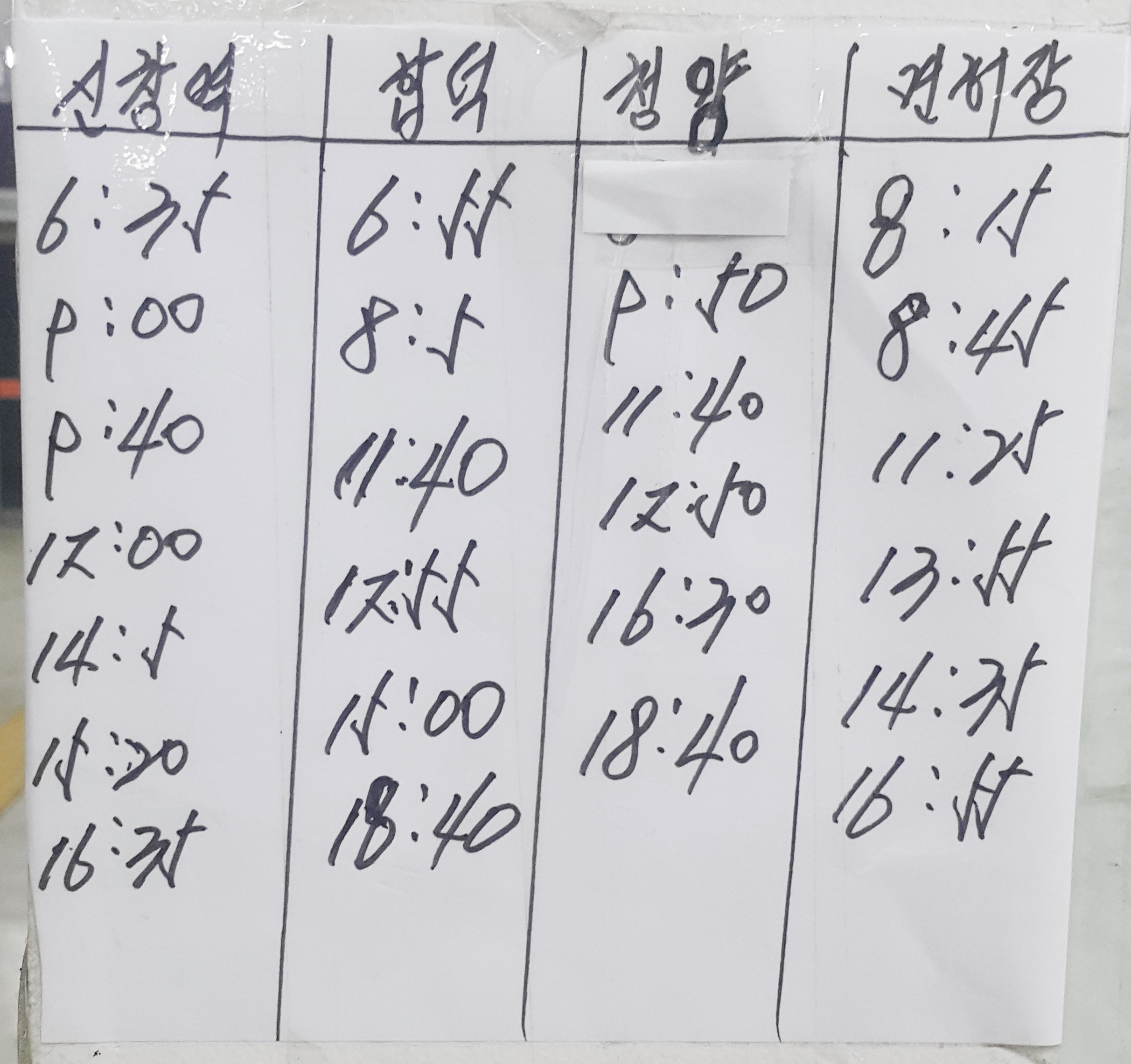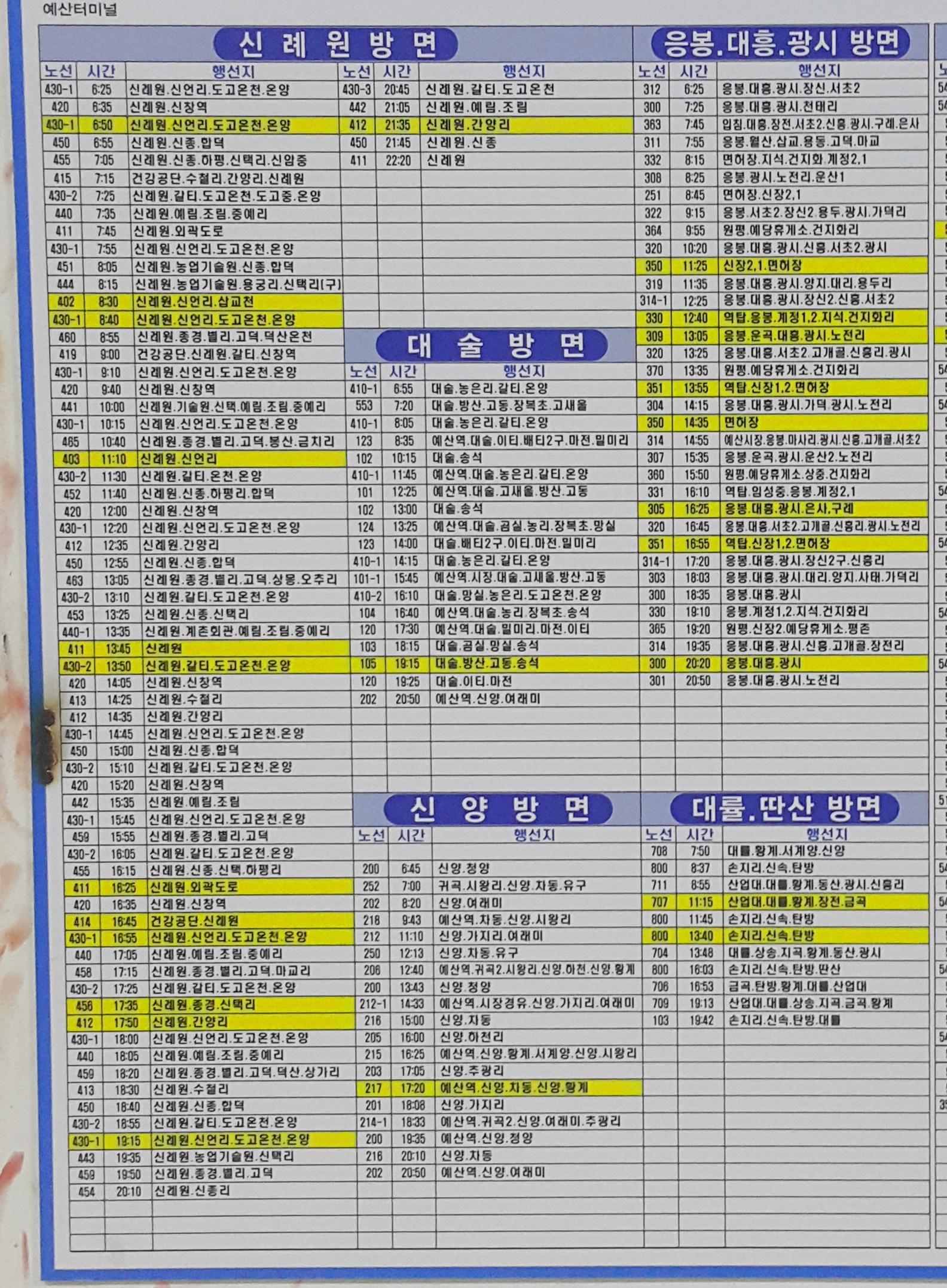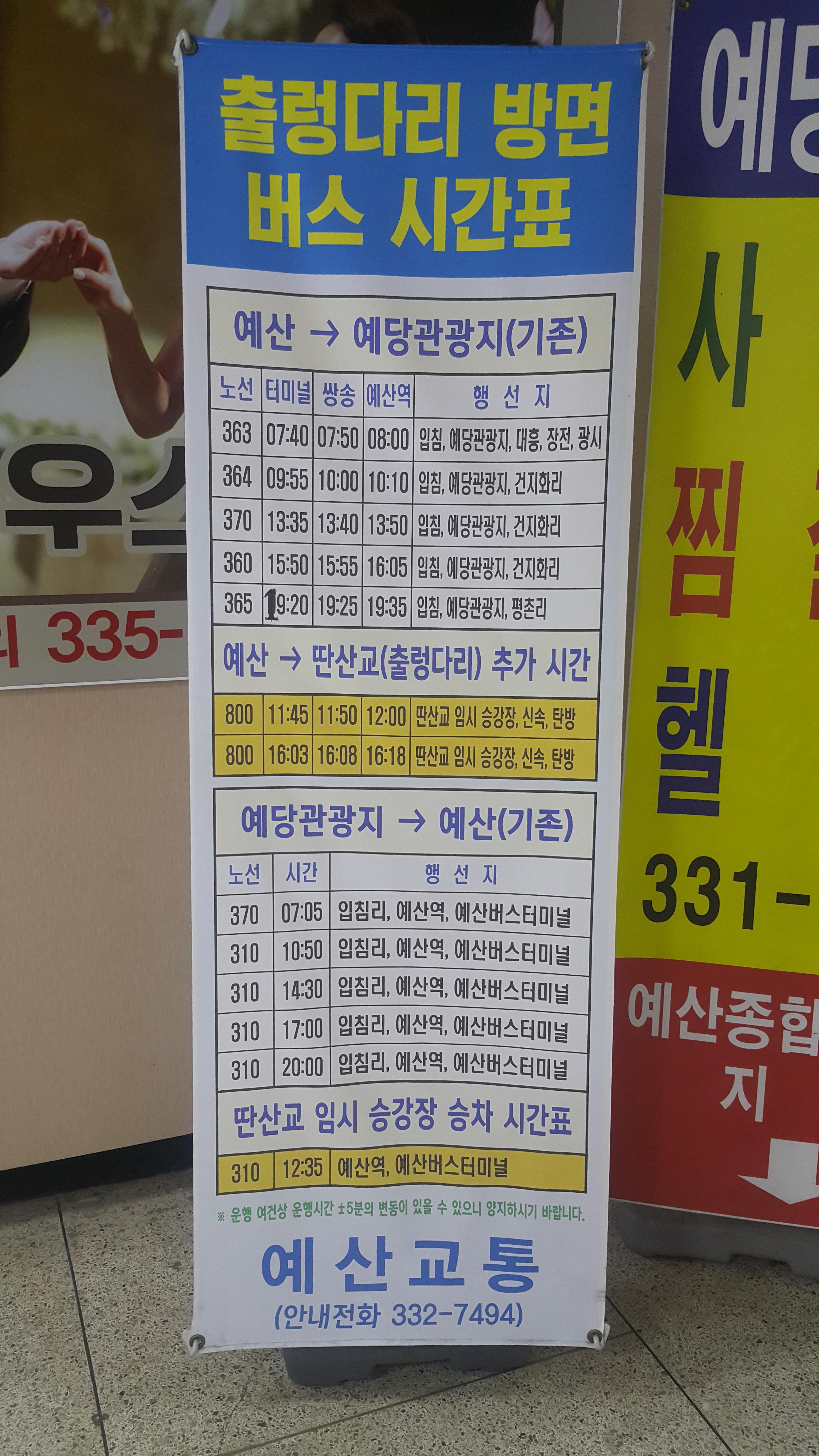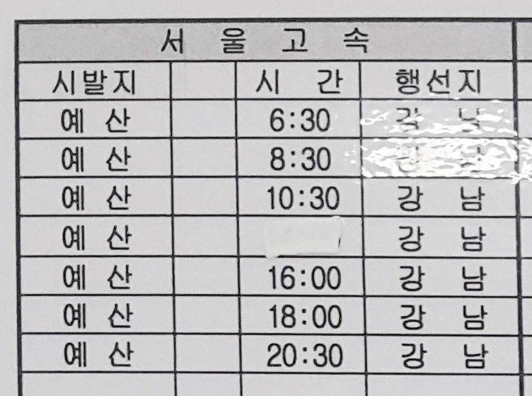 예산 출발 덕산, 해미, 서산, 태안 방면.