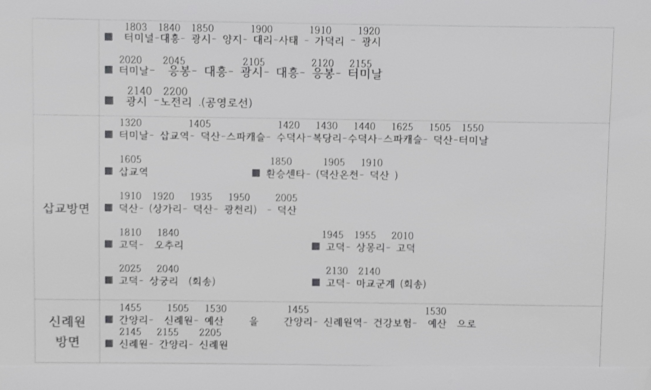 예산시외버스터미널 시간표