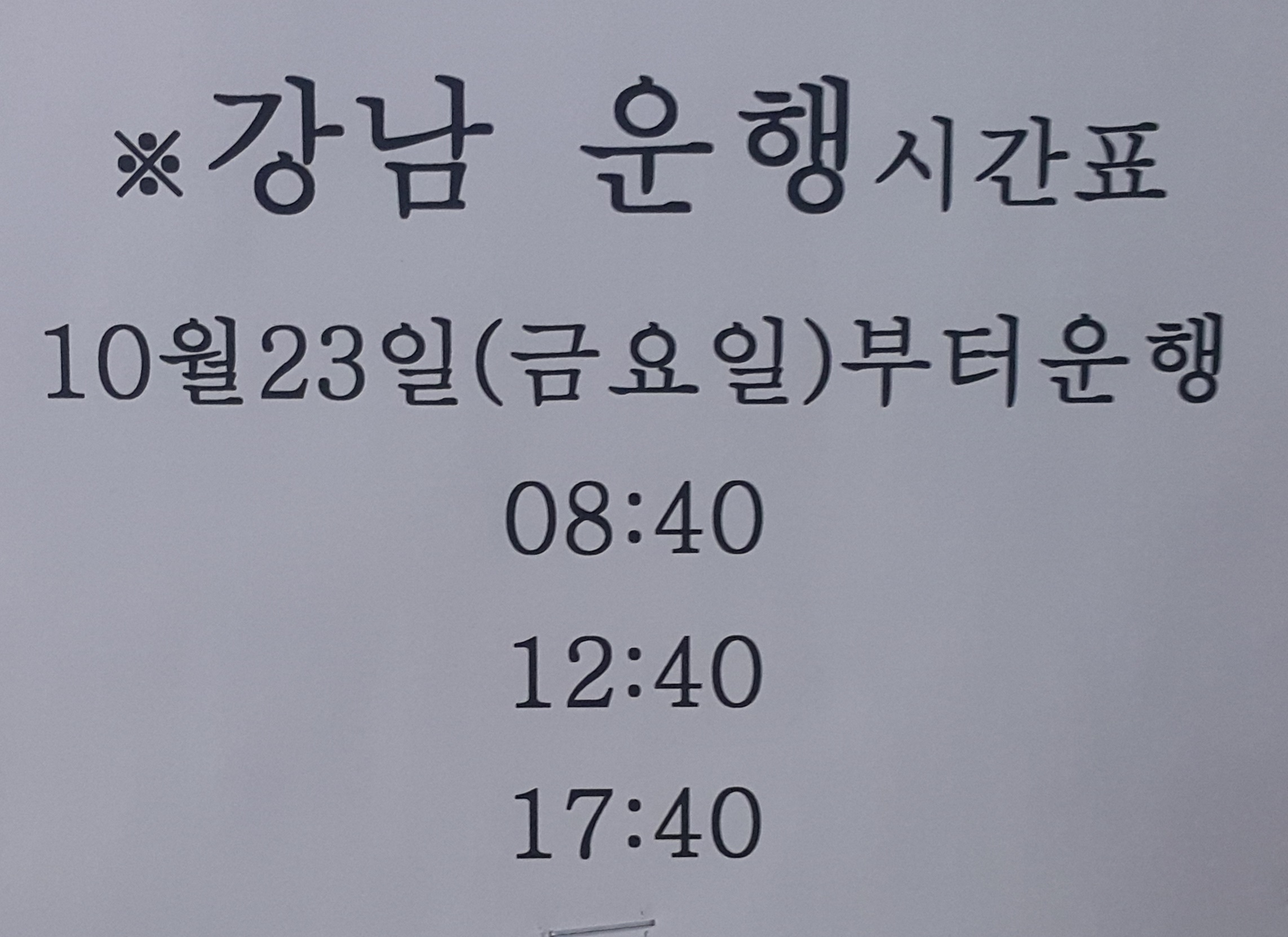 예천 출발 포항, 영주, 태백, 청주 방면.