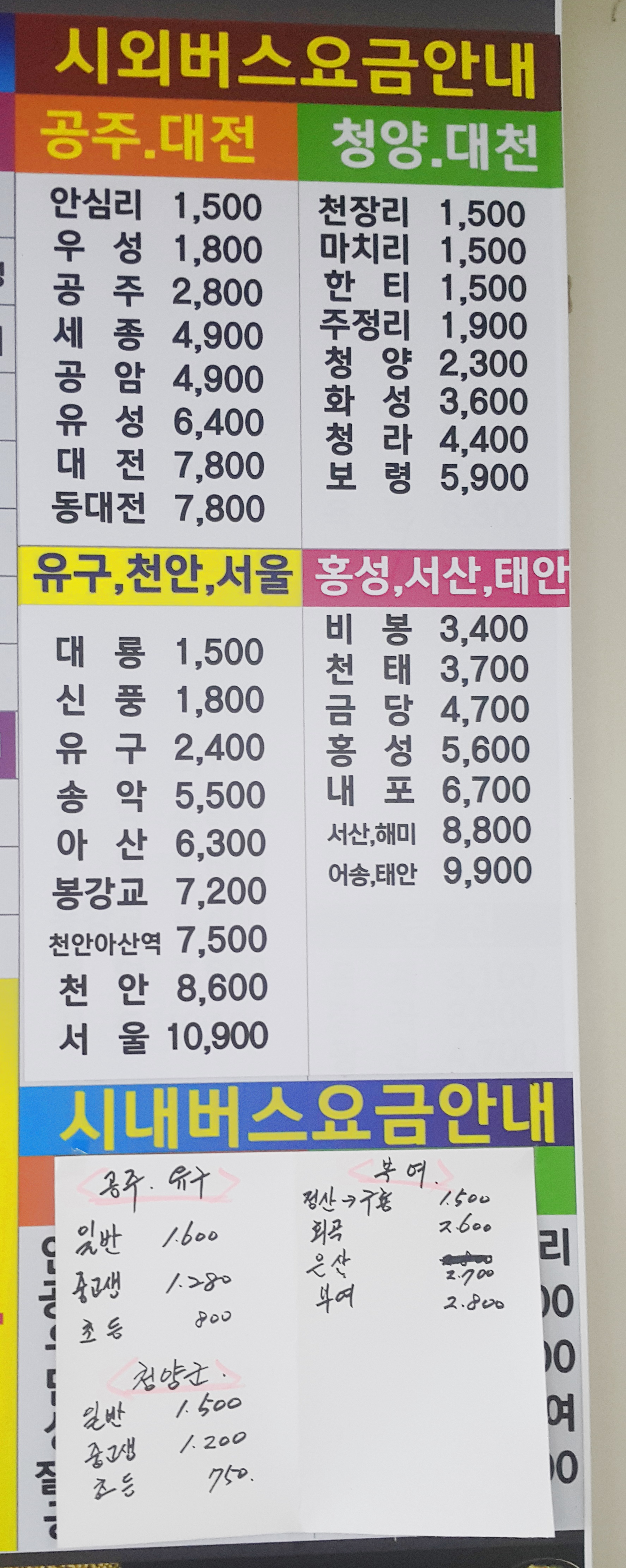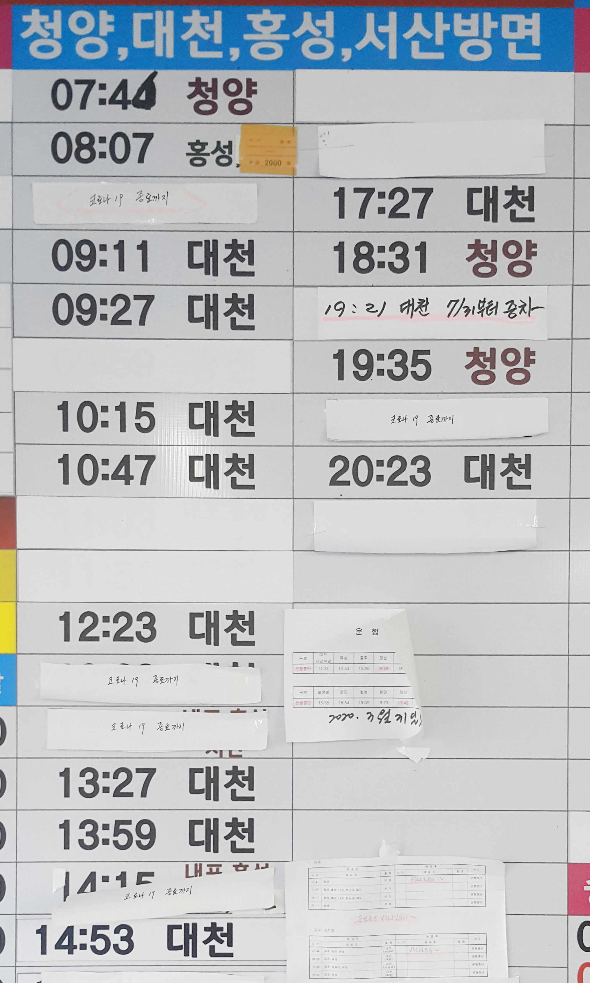 청양 정산 출발 청양, 대천, 홍성, 서산 방면.