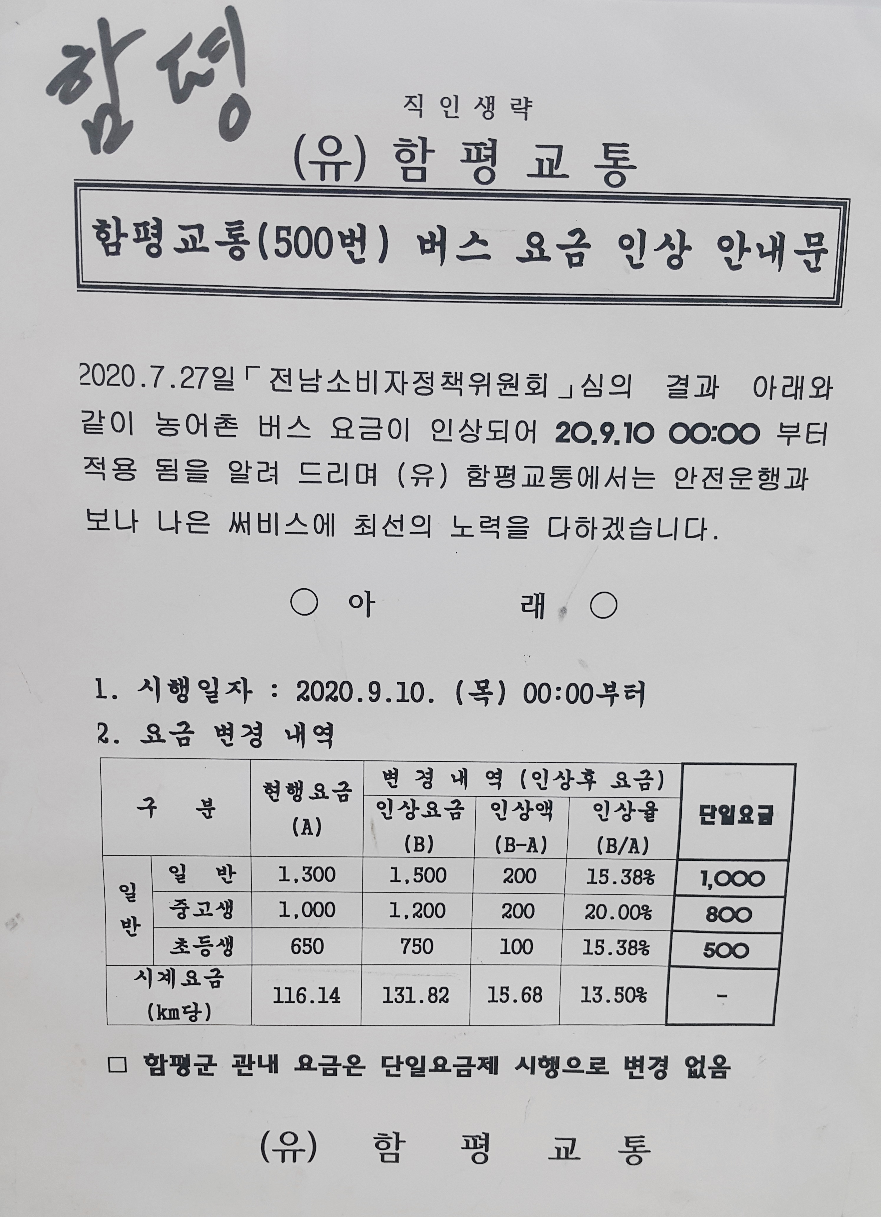 함평 군내버스 시간표