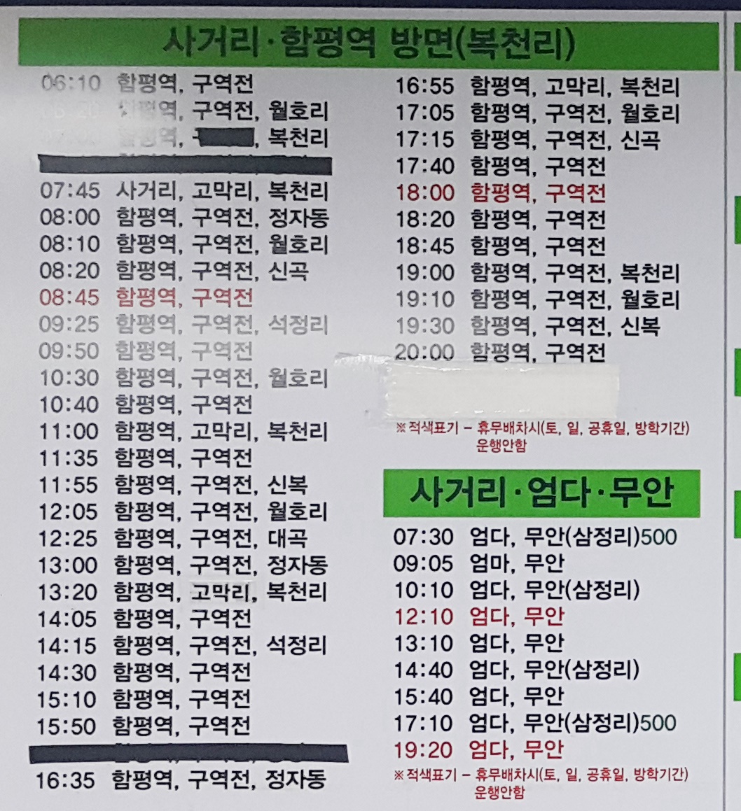 함평 출발 광주, 서울, 인천, 부천, 수원, 공주, 세종 방면.