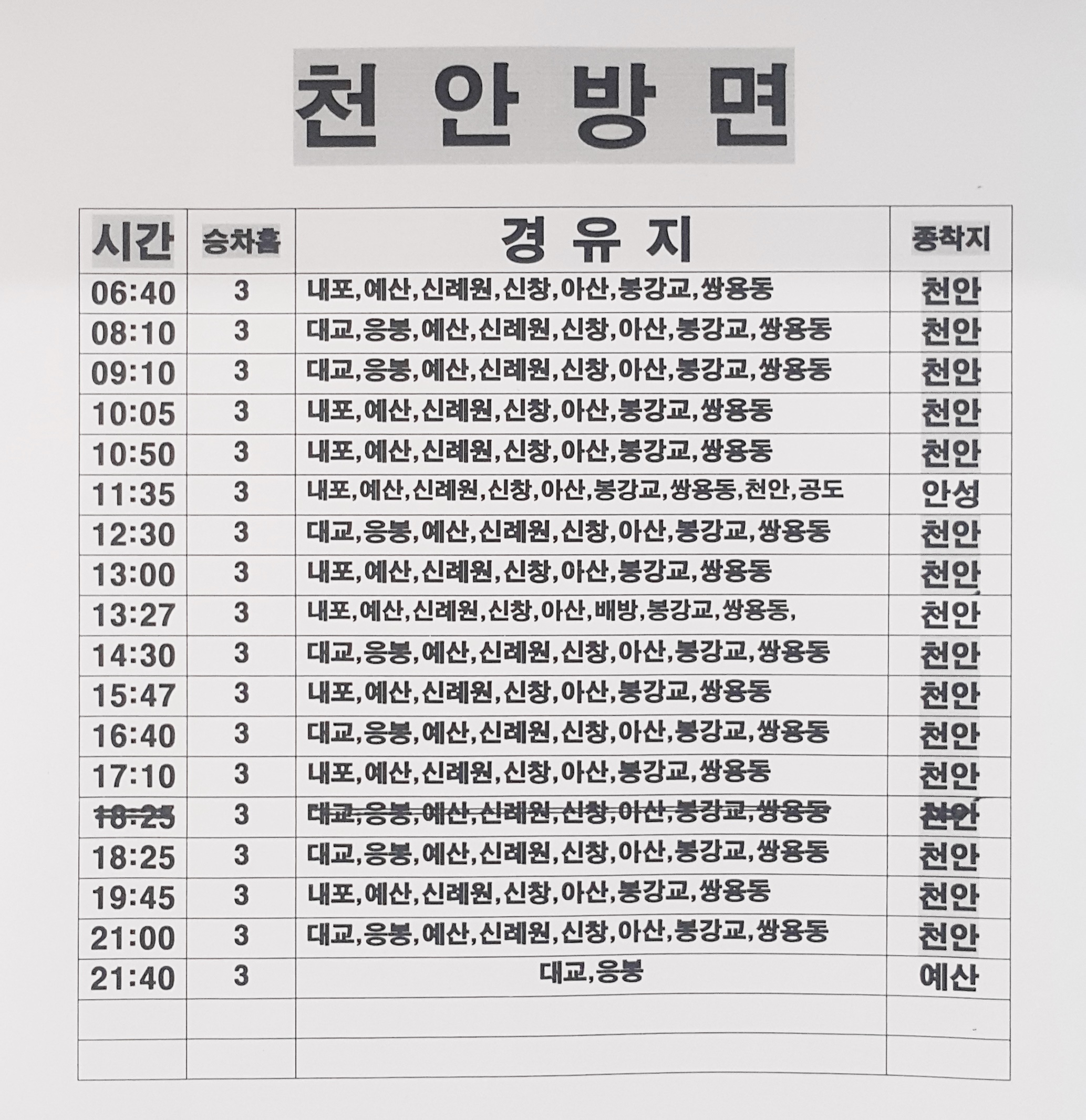 총성 출발 천안 방면.
