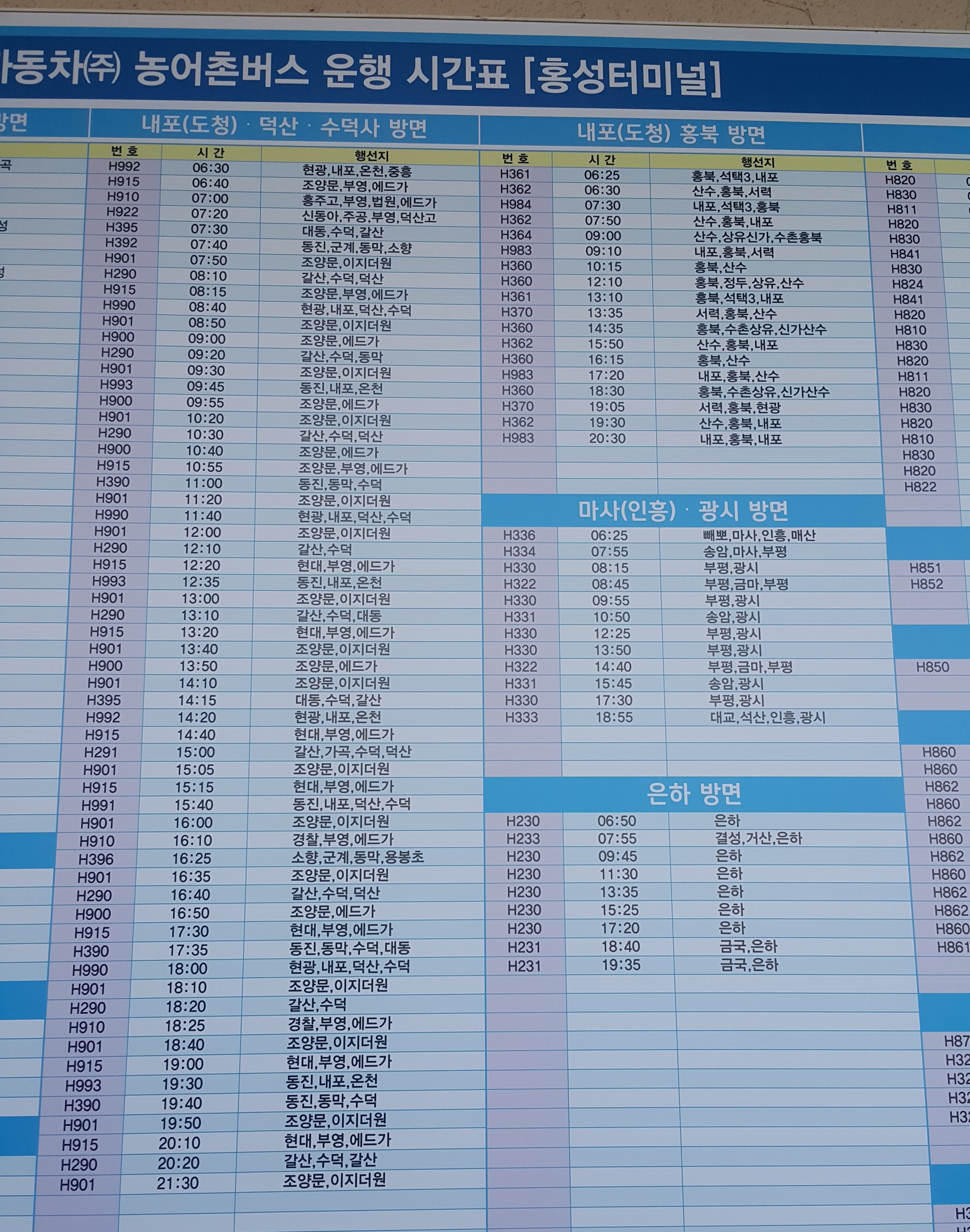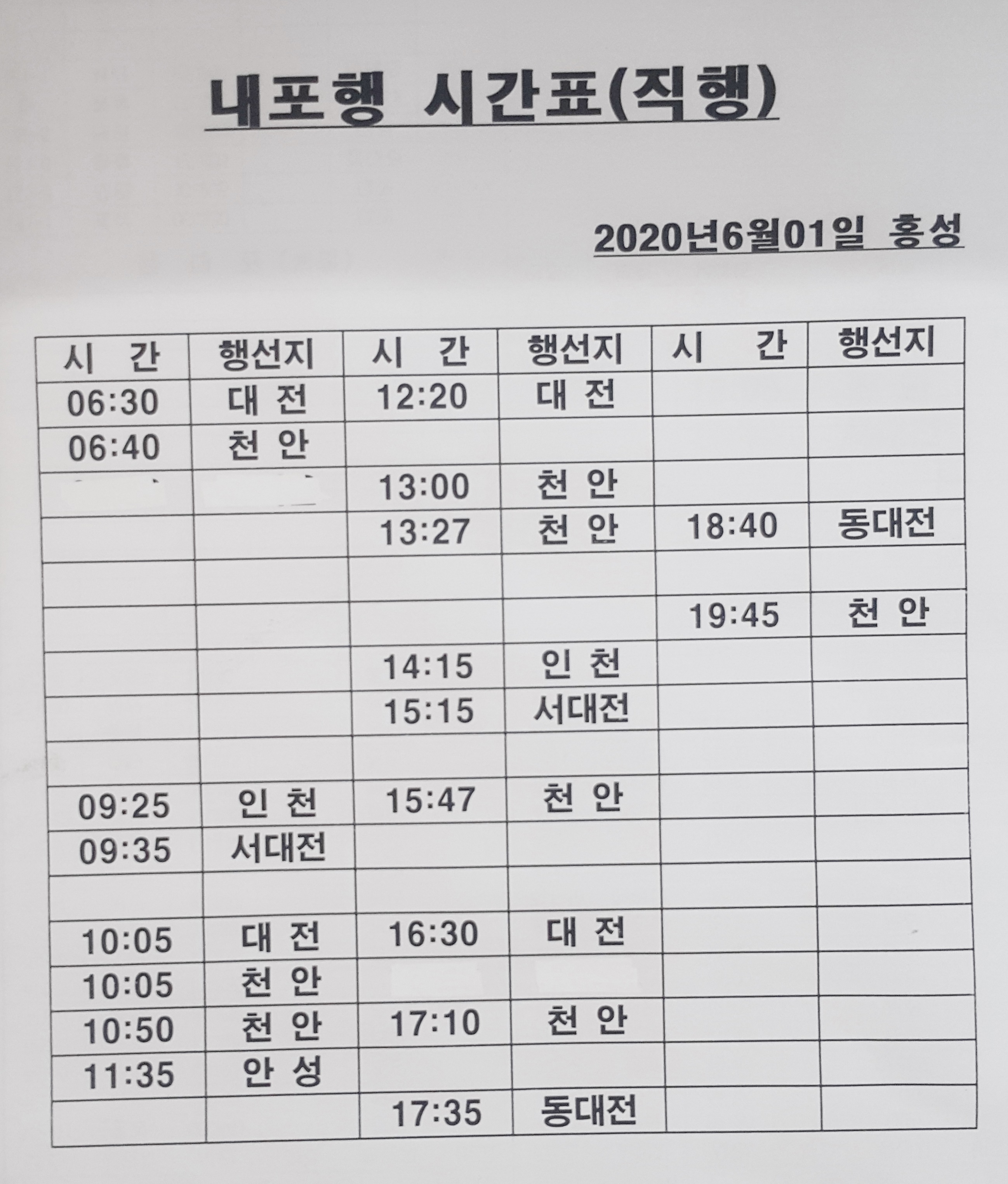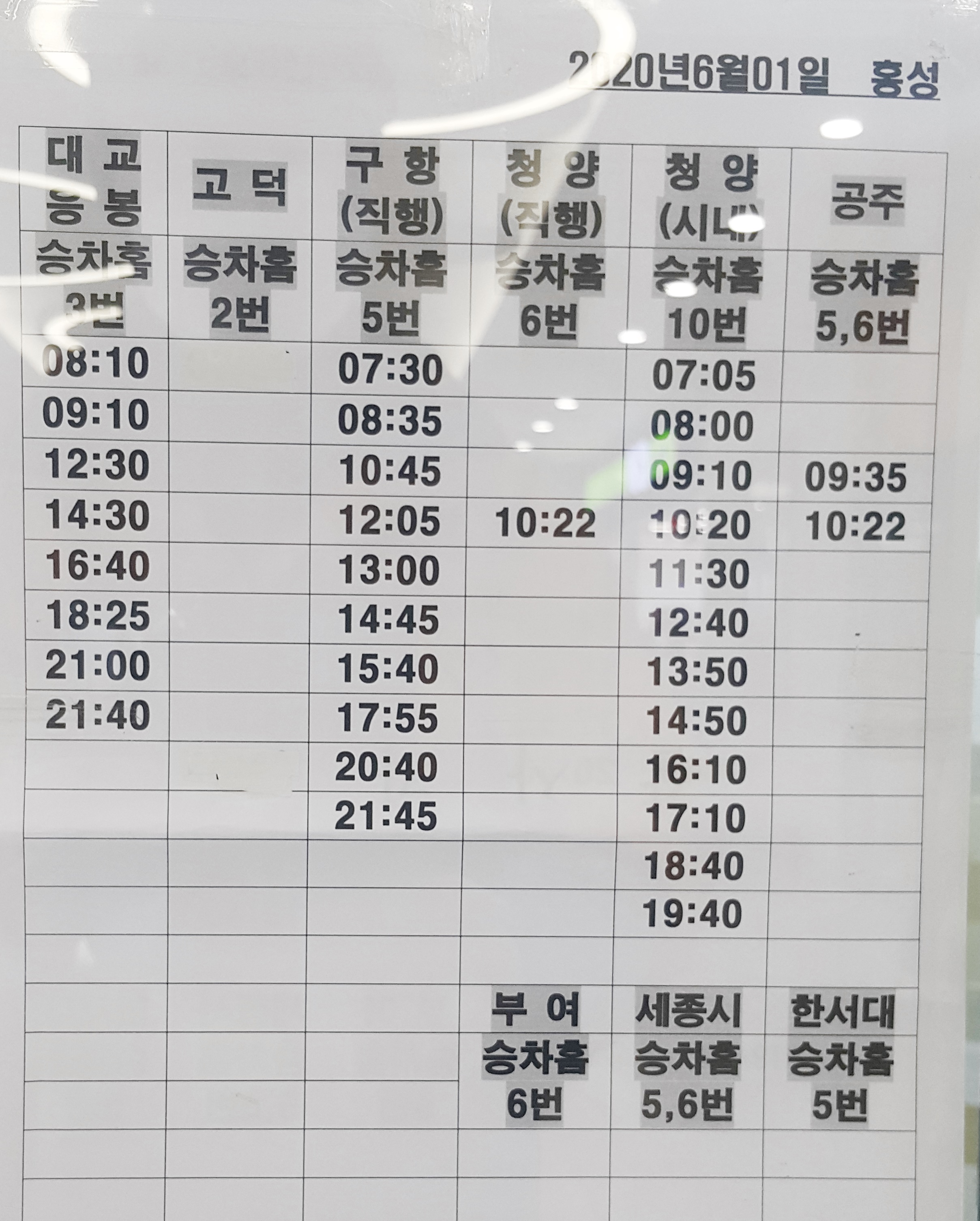 홍성시외버스터미널 시간표 홍성터미널