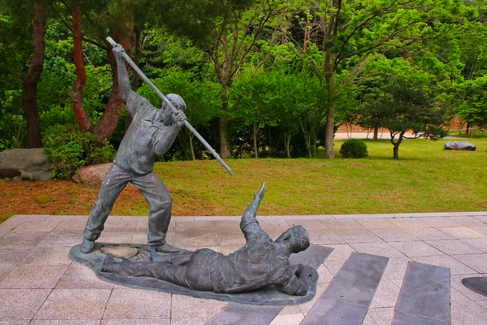 6.25 남침 사적 탑으로 오르는 계단 양옆으로 그려진 벽화에서는 그날의 잔혹함이 그려져 있습니다.