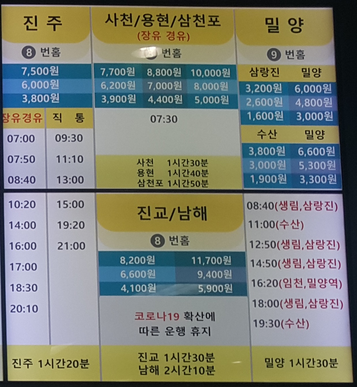 김해시외버스터미널 출발 언양, 경주, 포항 운행시간