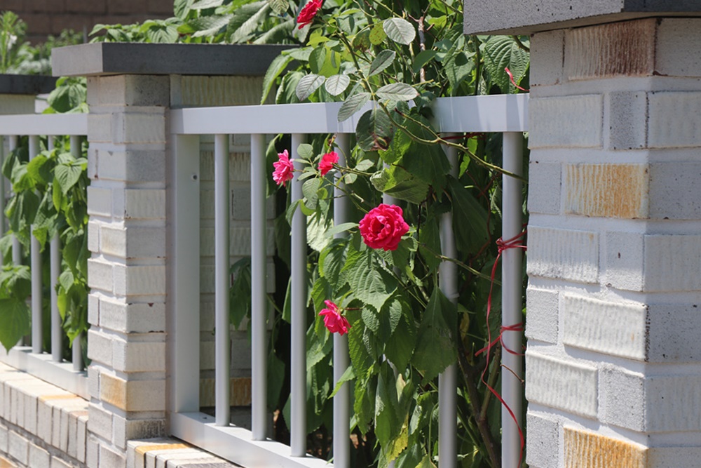 한 가정집의 울타리에는 장미꽃이 피어나 지나가는 사람들의 발걸음을 멈추게 합니다.