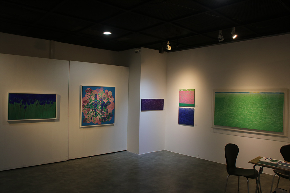 색감으로 풀어내는 여백은 캔버스 작업의 주도적 이미지 전달 매체로 작용하며, 단순함과 화려함의 조화는