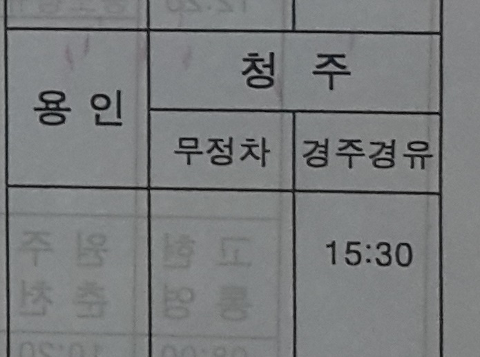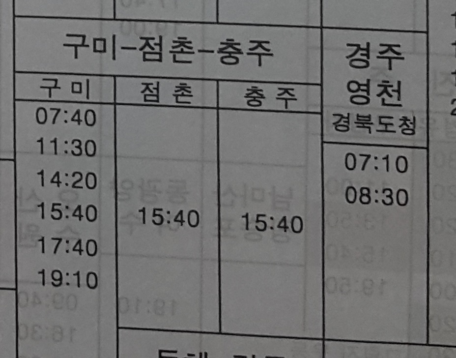 울산 출발 구미, 점촌, 충주, 경주, 영천, 경북도청 방면.