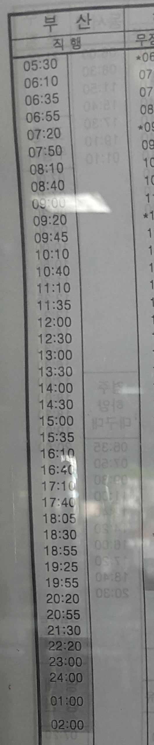 울산 출발 동광양, 여수, 광양, 순천, 목포, 보성 방면.