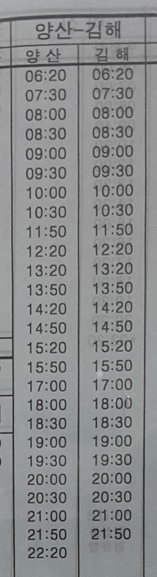 울산 출발 경주, 포항, 하양, 대구대 방면.