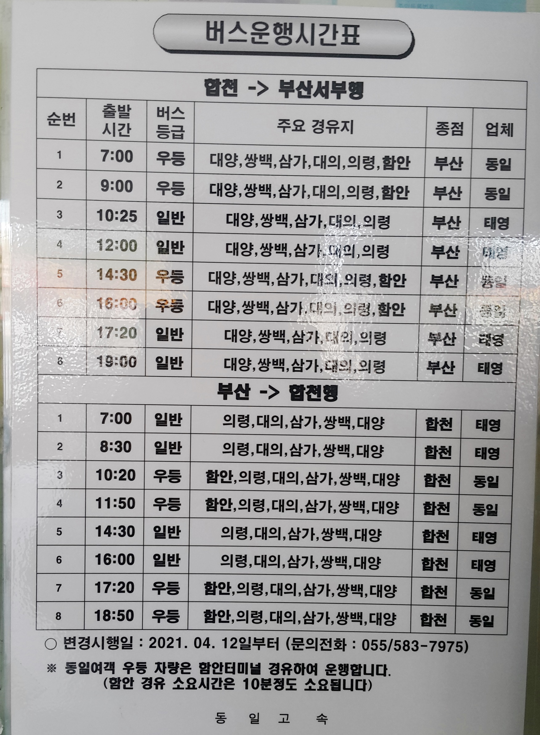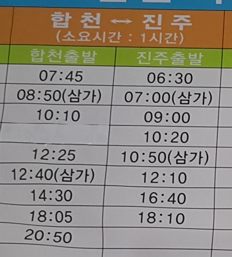 합천 완행버스 시간표
