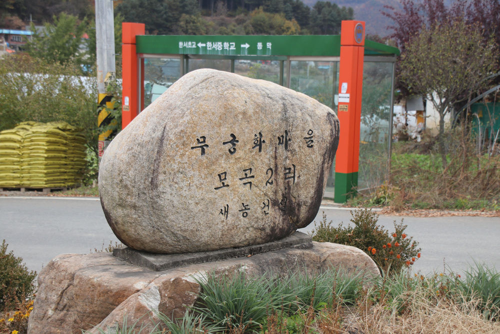 표지석에는 무궁화마을 모곡2리라고 조각되어 있어