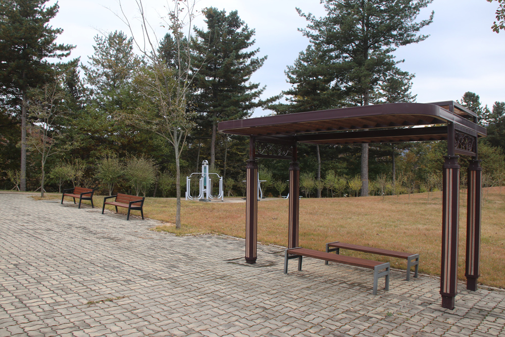 산책로 중앙에 정자쉼터가 있어 정자에서 무궁화동산을 바라보는 즐거움을 가질 수 있습니다.