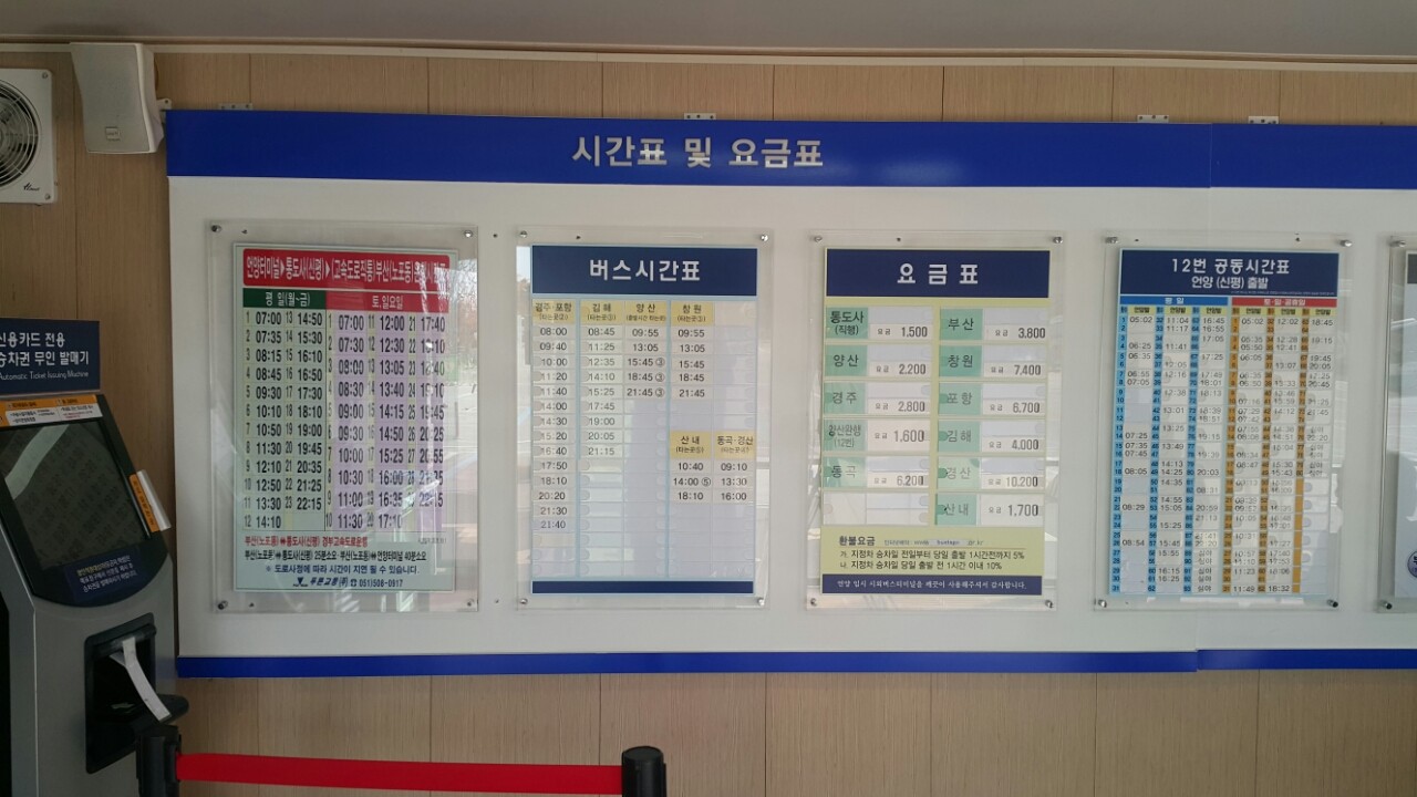 언냥시외버스터미널 요금표