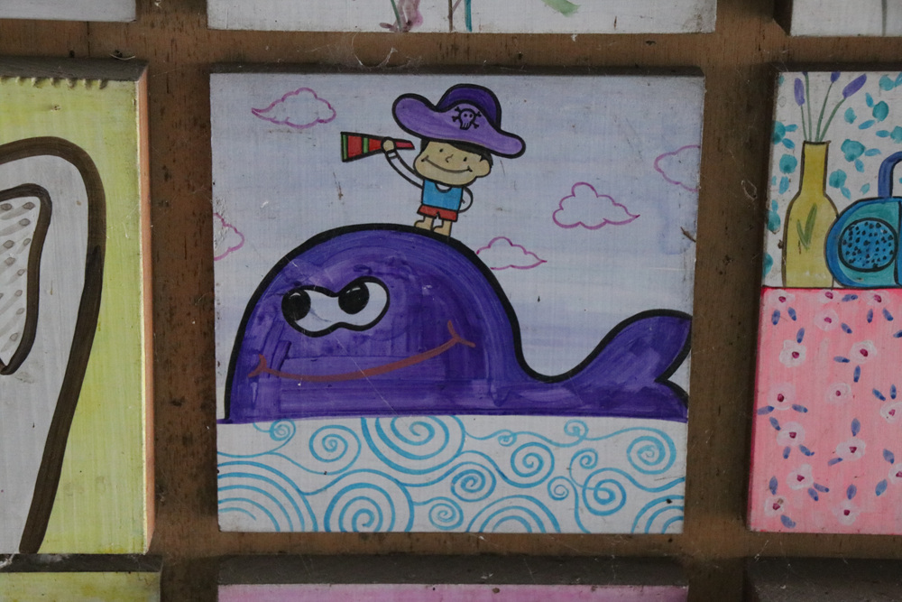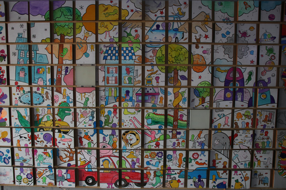 이곳은 탄화목 위에 아크릴을 이용하여 지역작가와 어린이들이 직접 그린 그림을 통해
