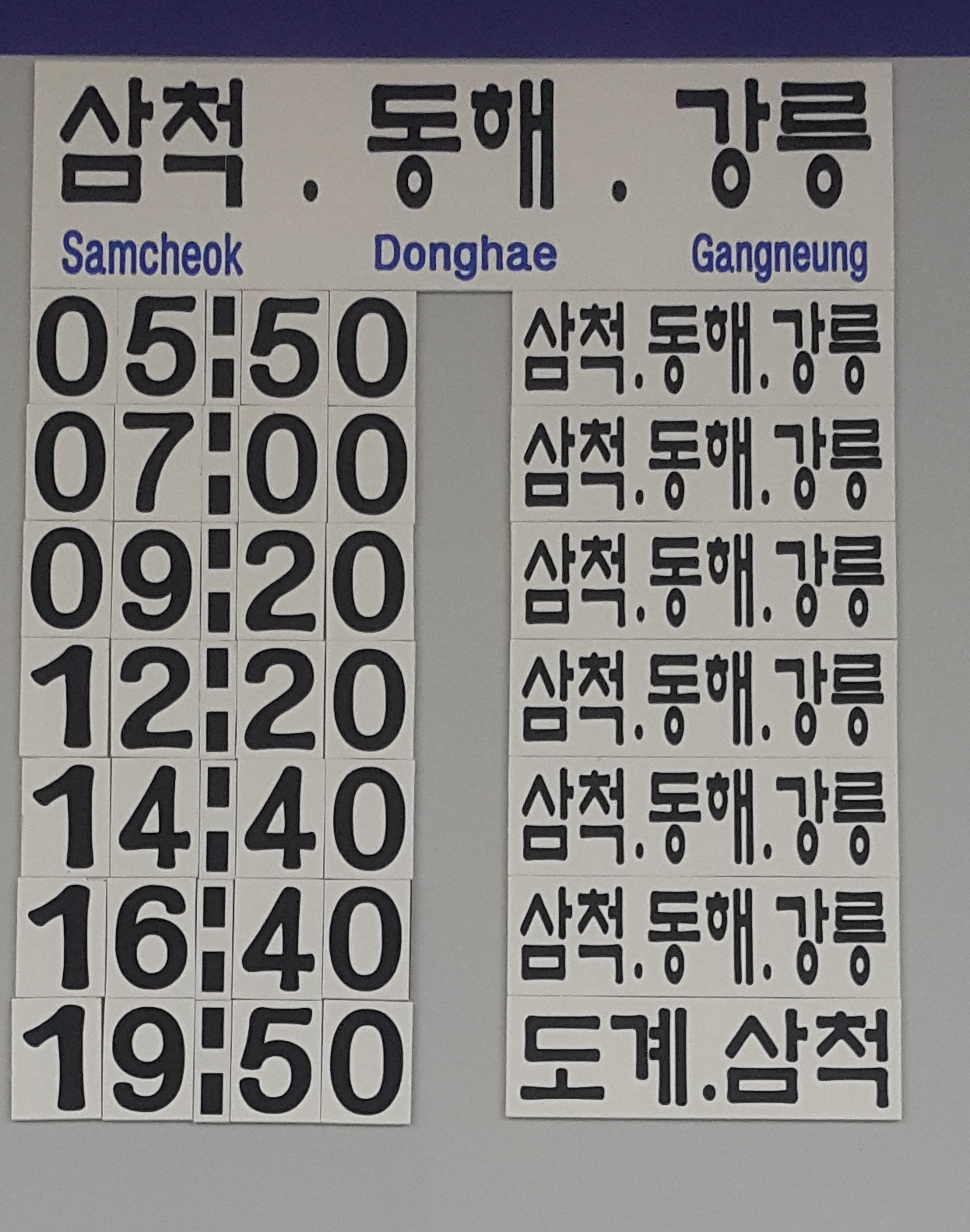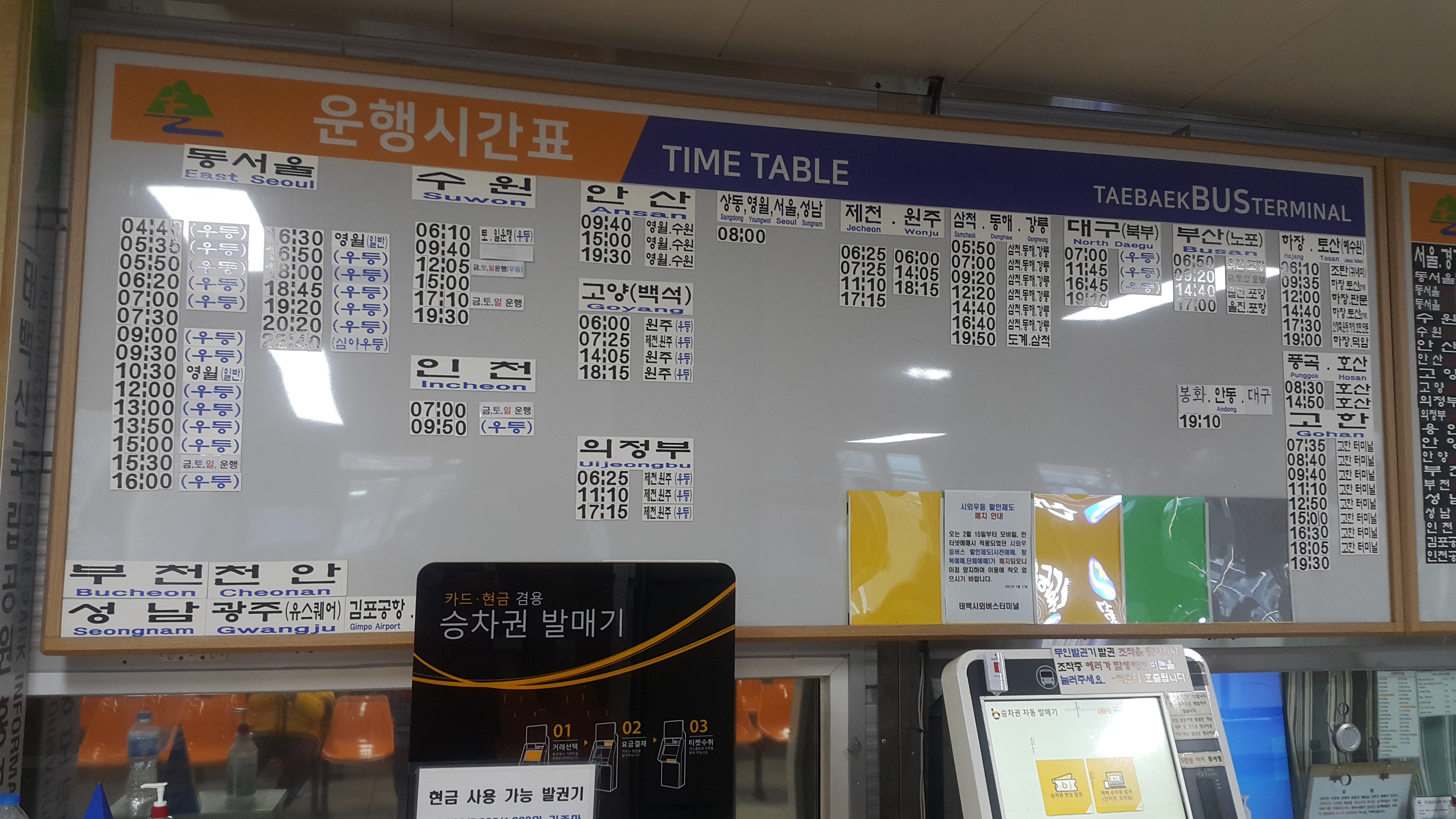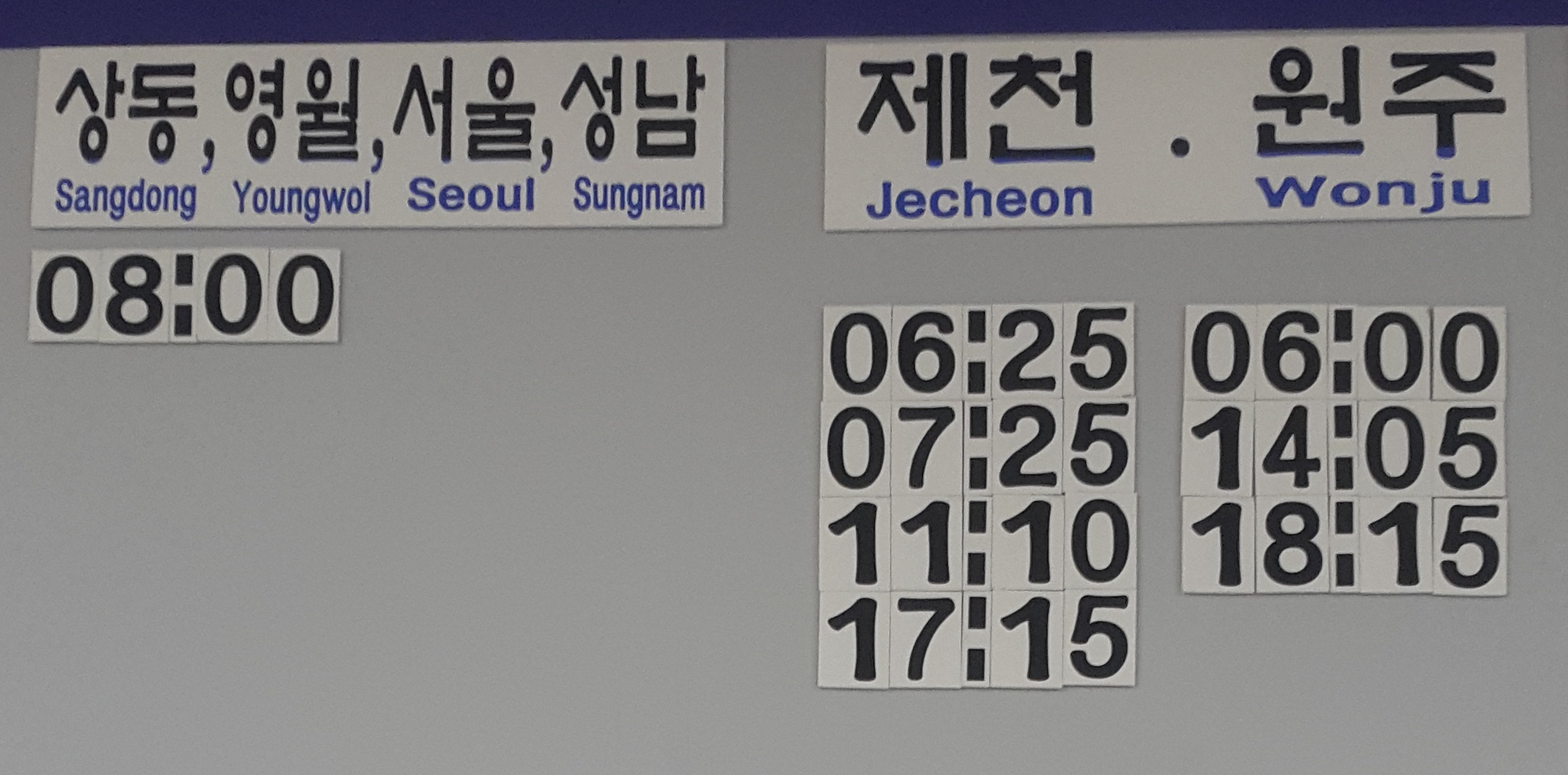 태백 출발 상동, 영월, 서울, 성남, 제천, 원주 방면.