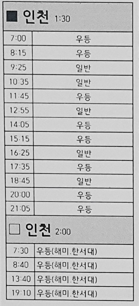 서산시외버스터미널 출발 인천 방면