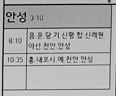서산 출발 남서울 방면.